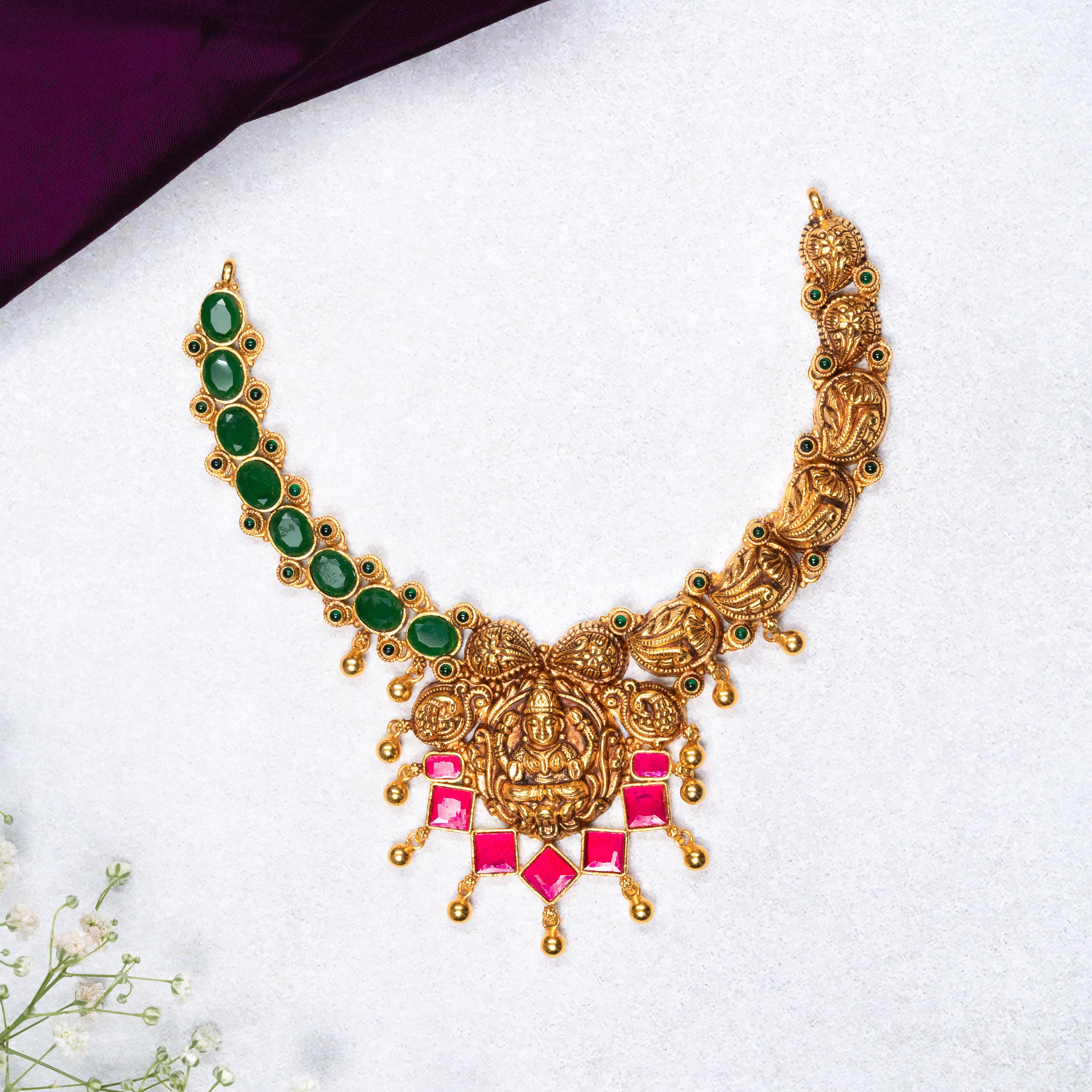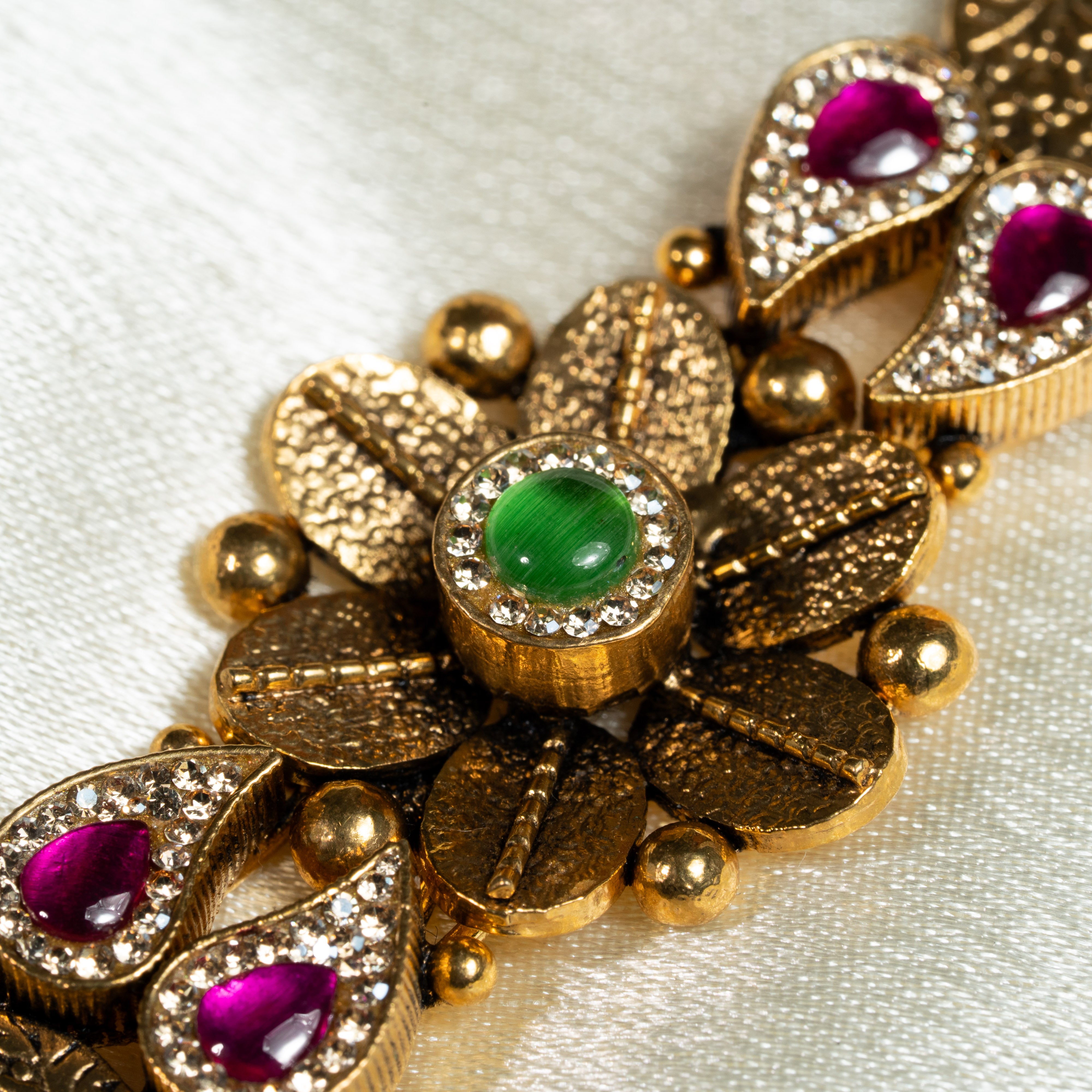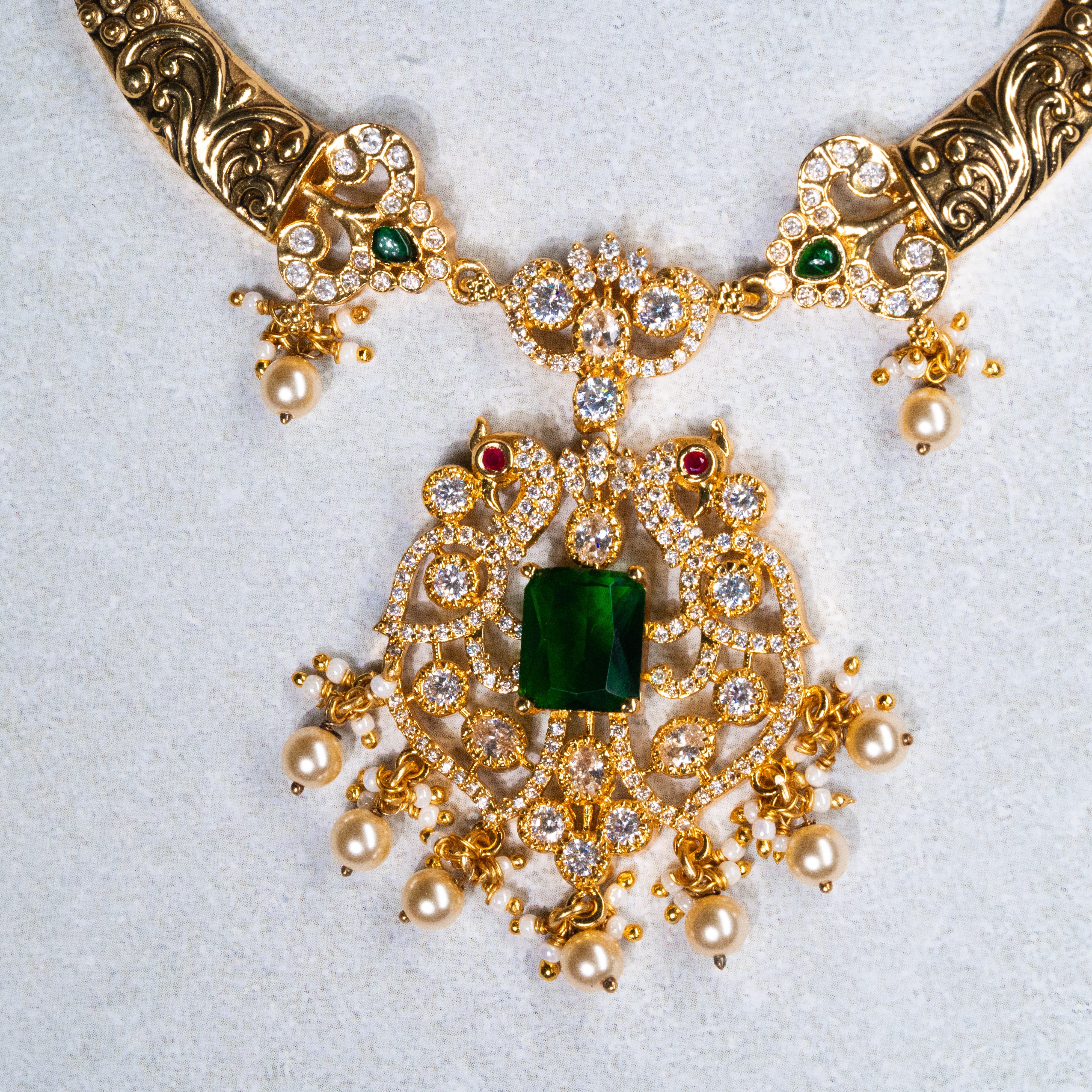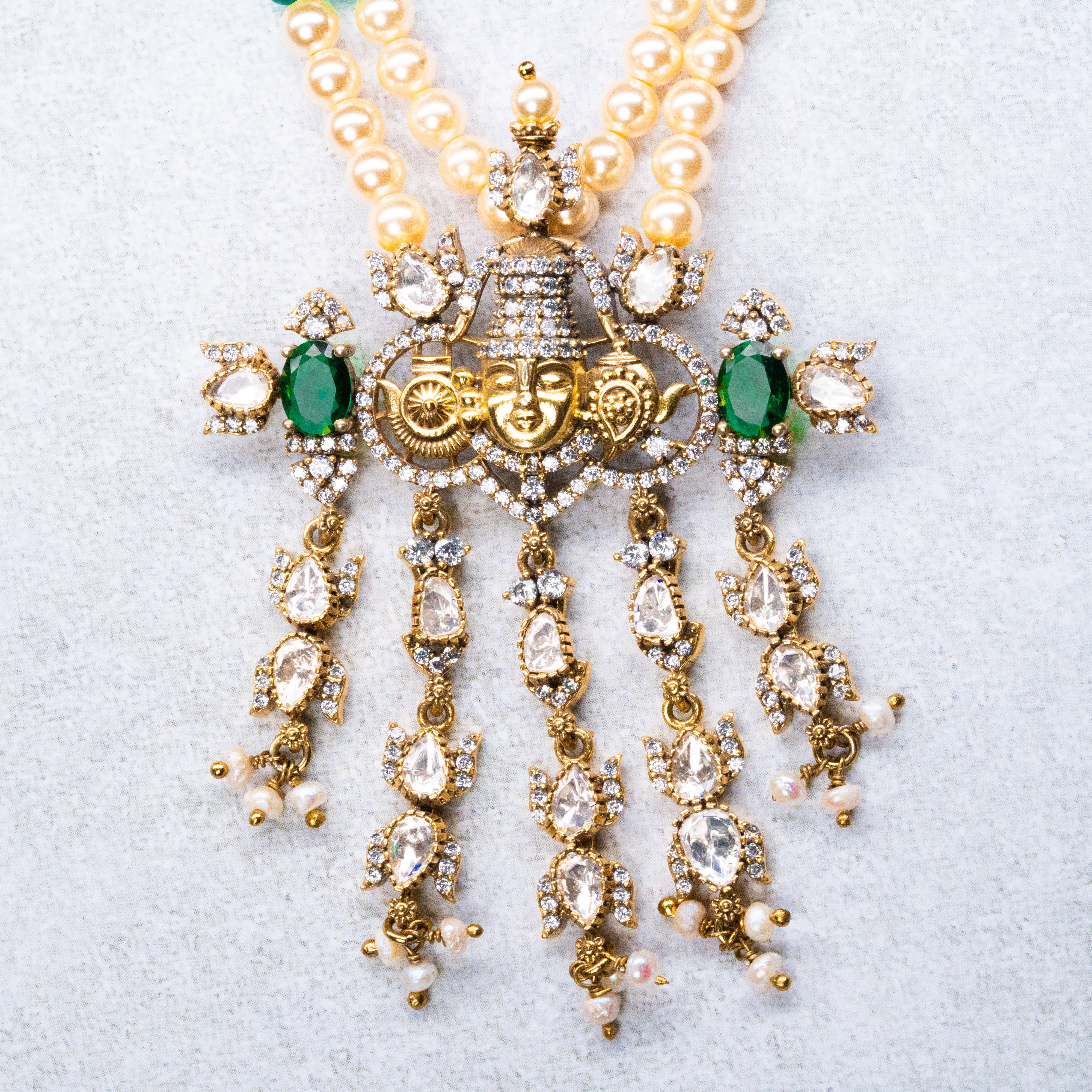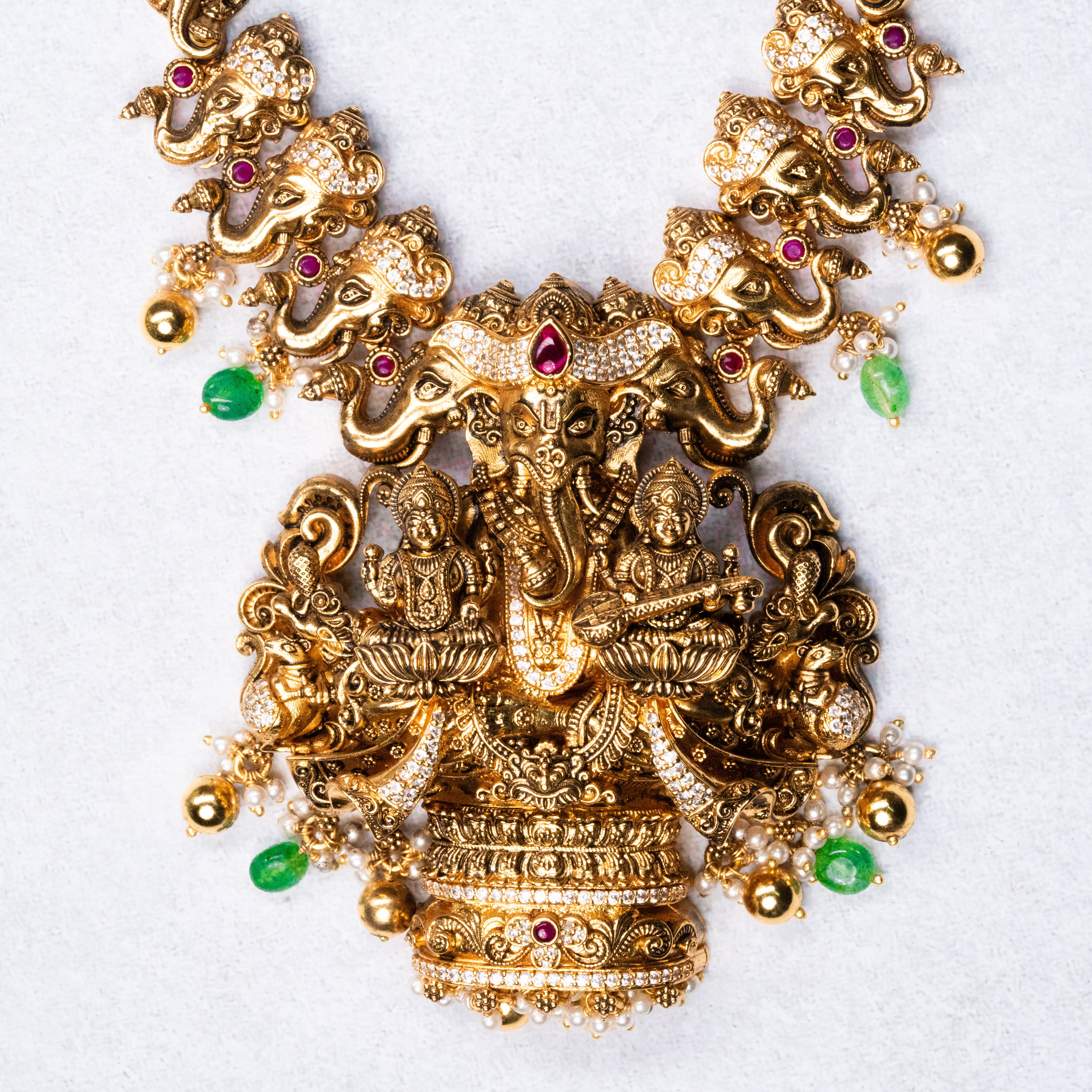 This stunning collection features intricate deep Nakas designs combined with exquisite Kundan work. Each piece is a unique creation, taking over 60-90 days to perfect, embodying the highest level of craftsmanship.