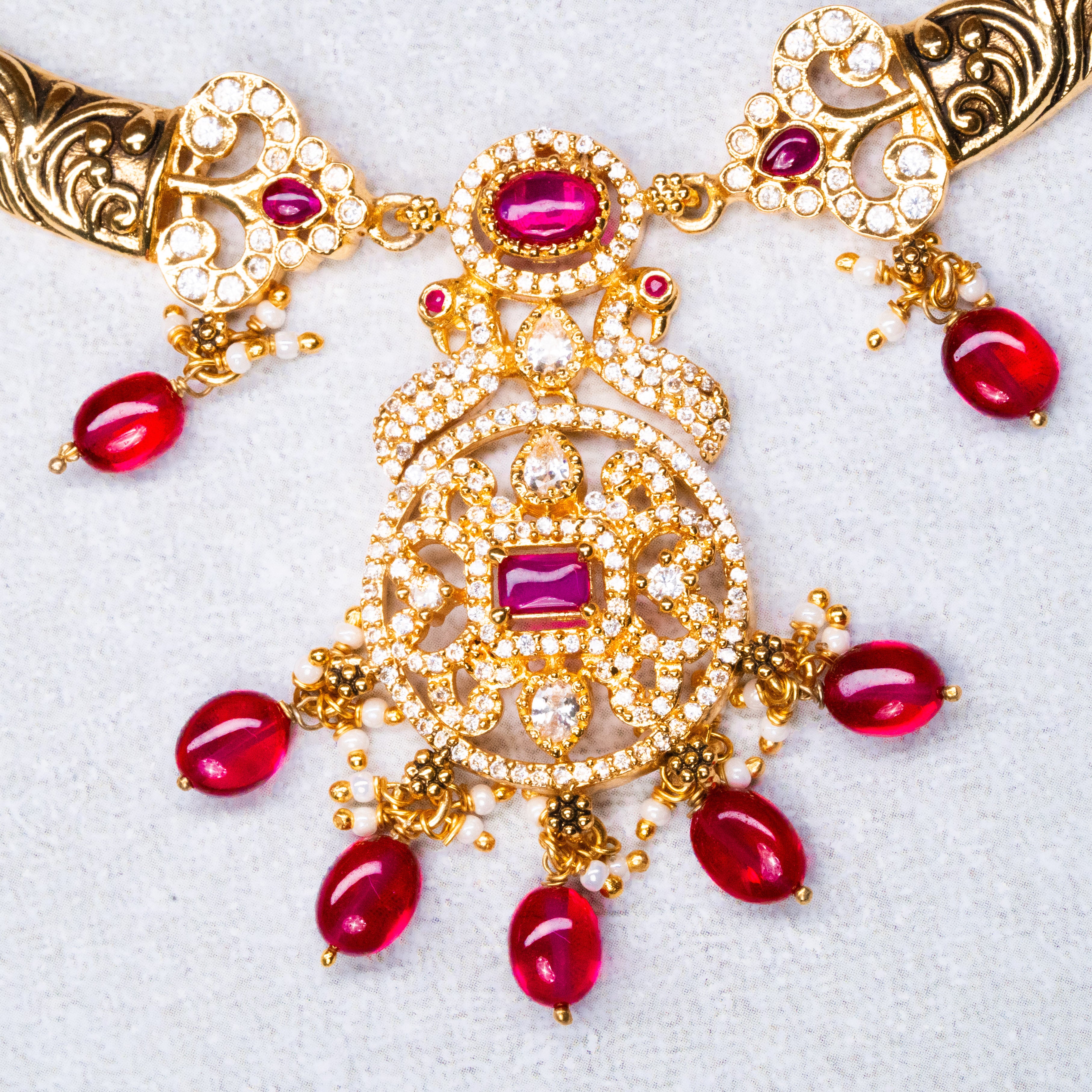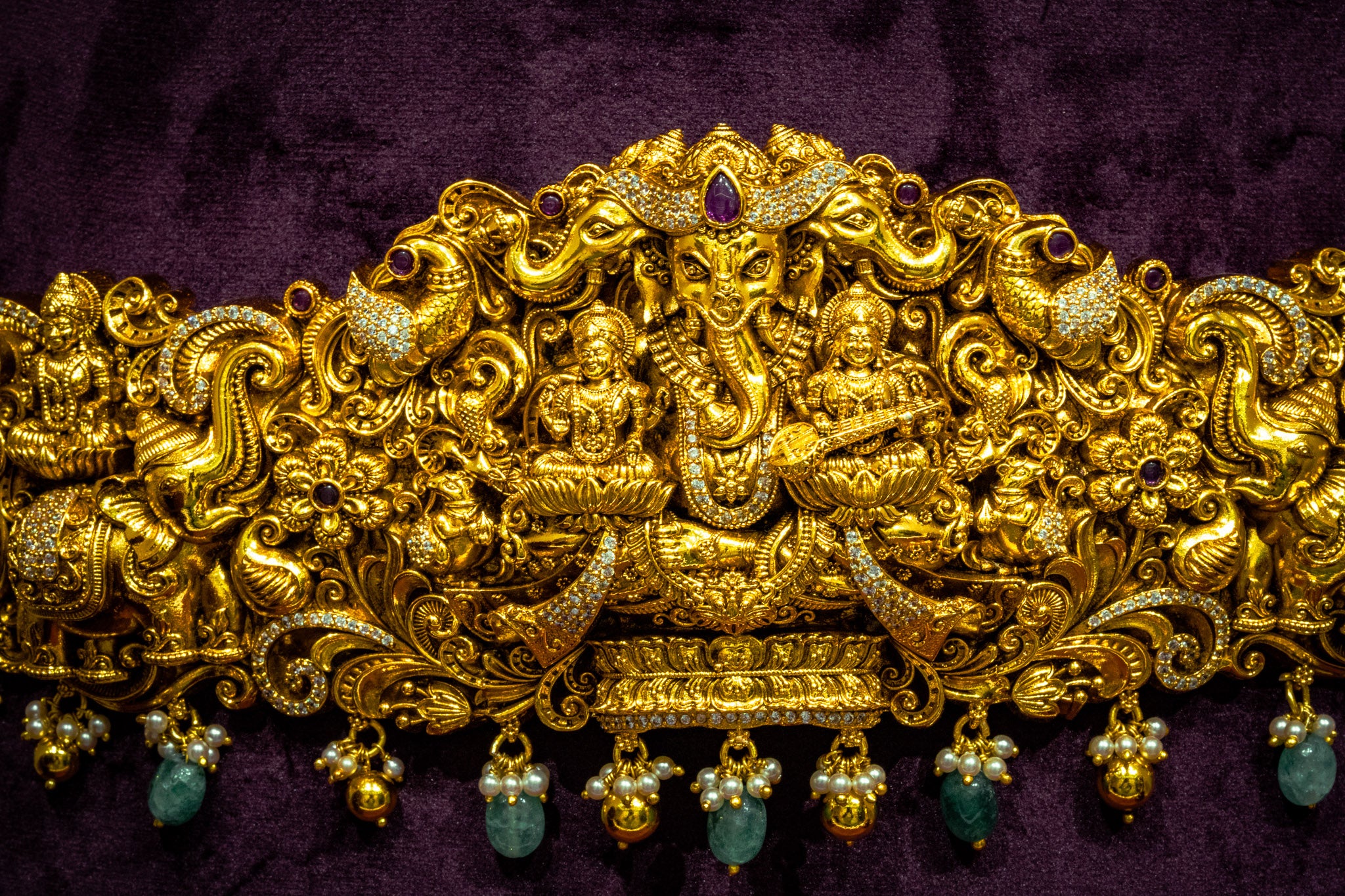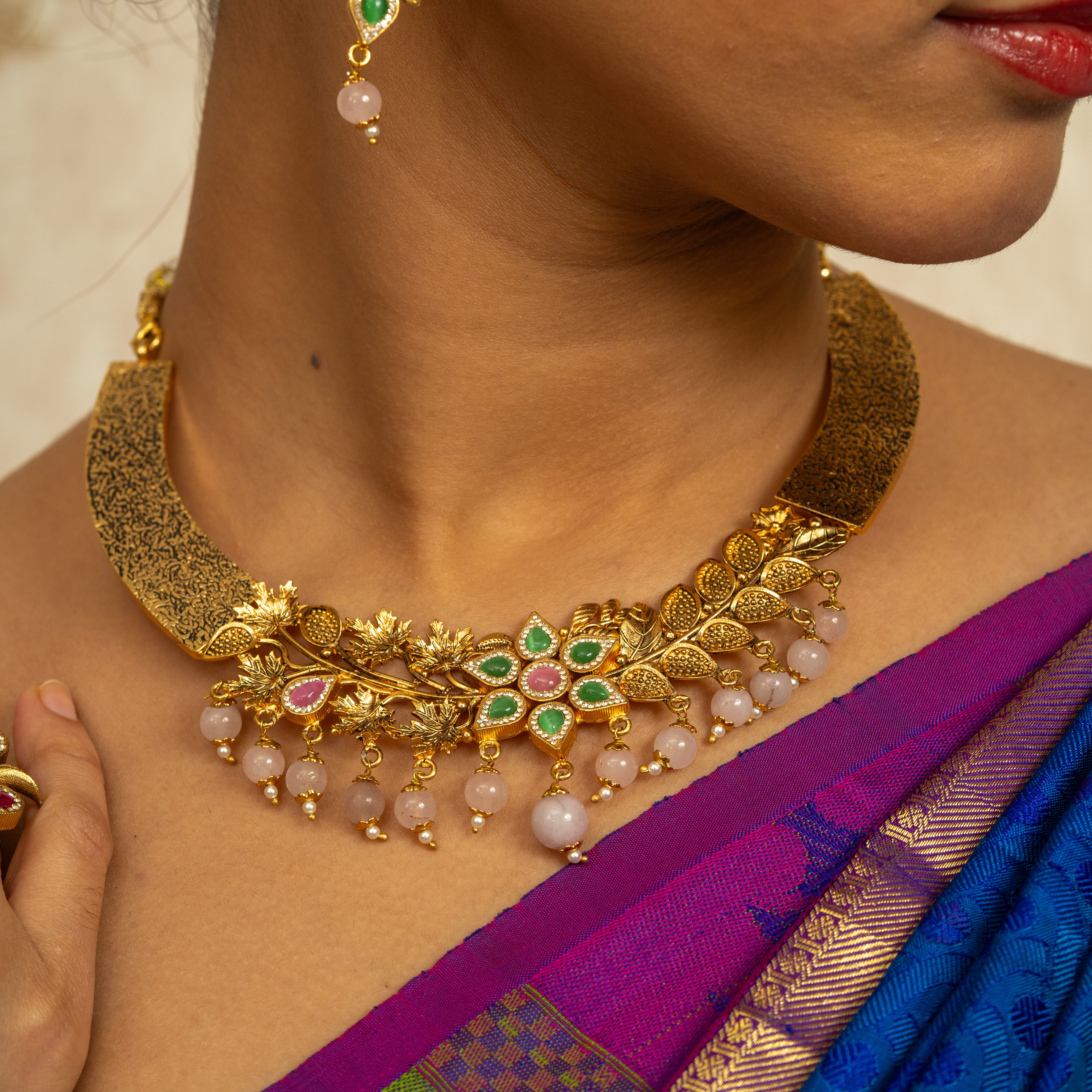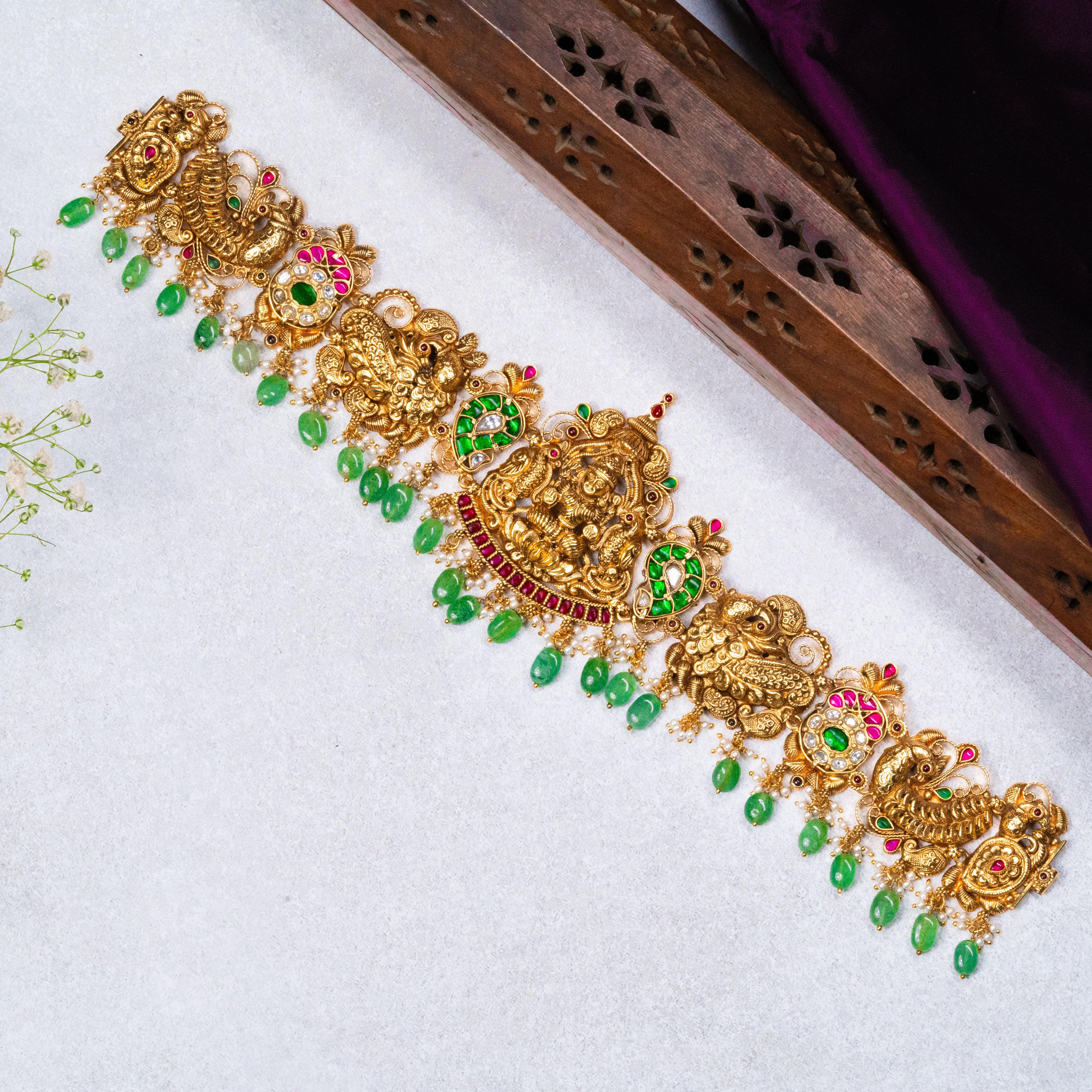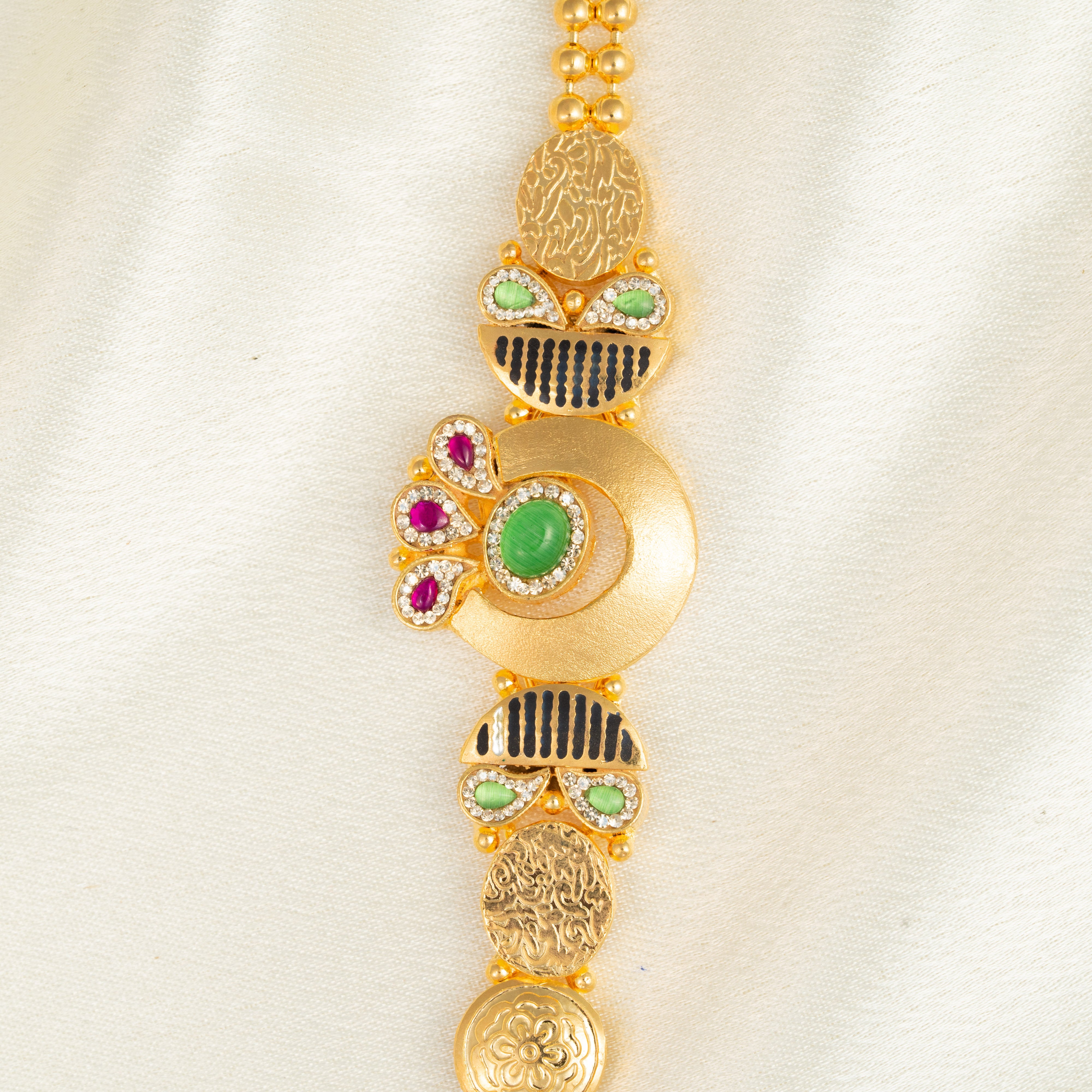 This stunning collection features intricate deep Nakas designs combined with exquisite Kundan work. Each piece is a unique creation, taking over 60-90 days to perfect, embodying the highest level of craftsmanship.
