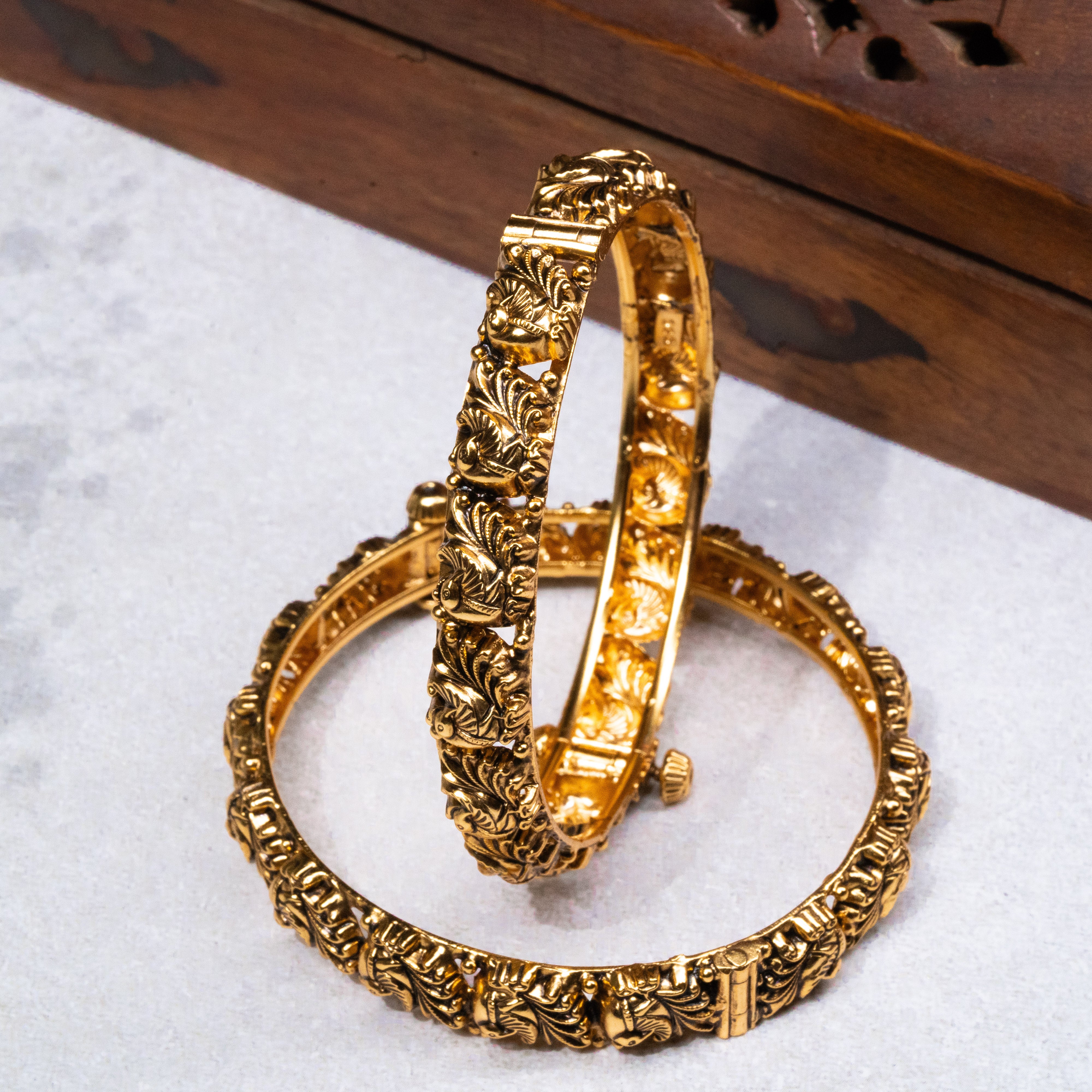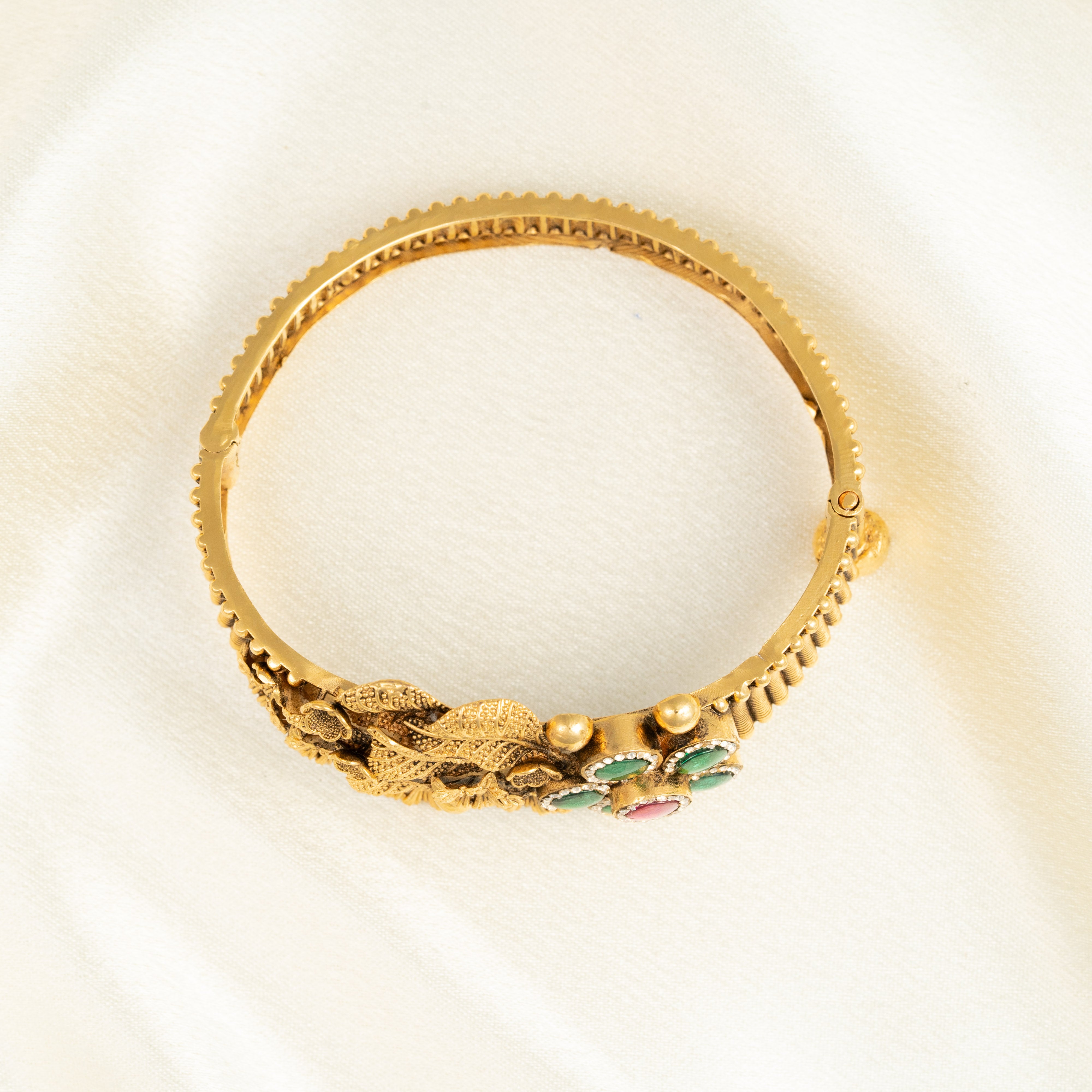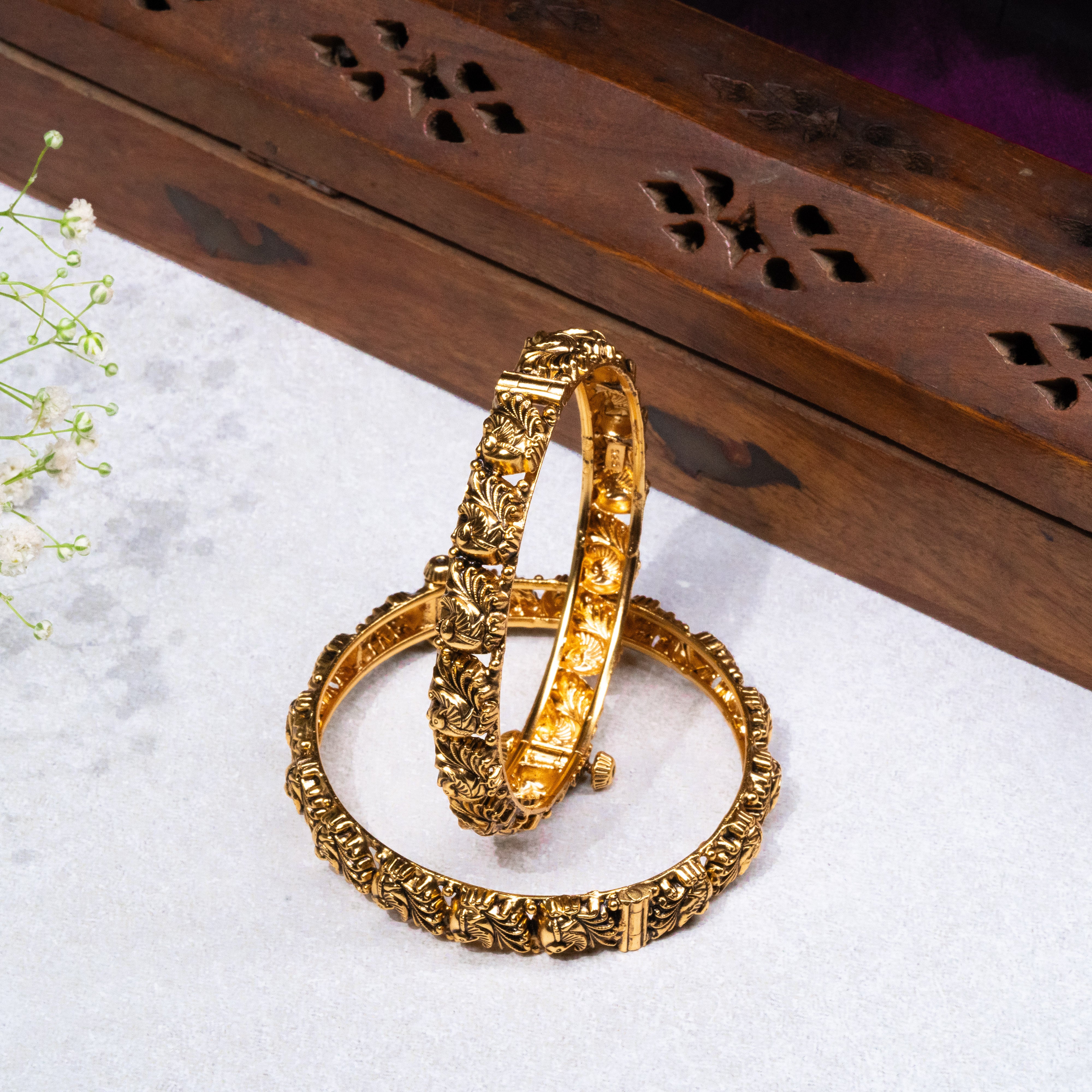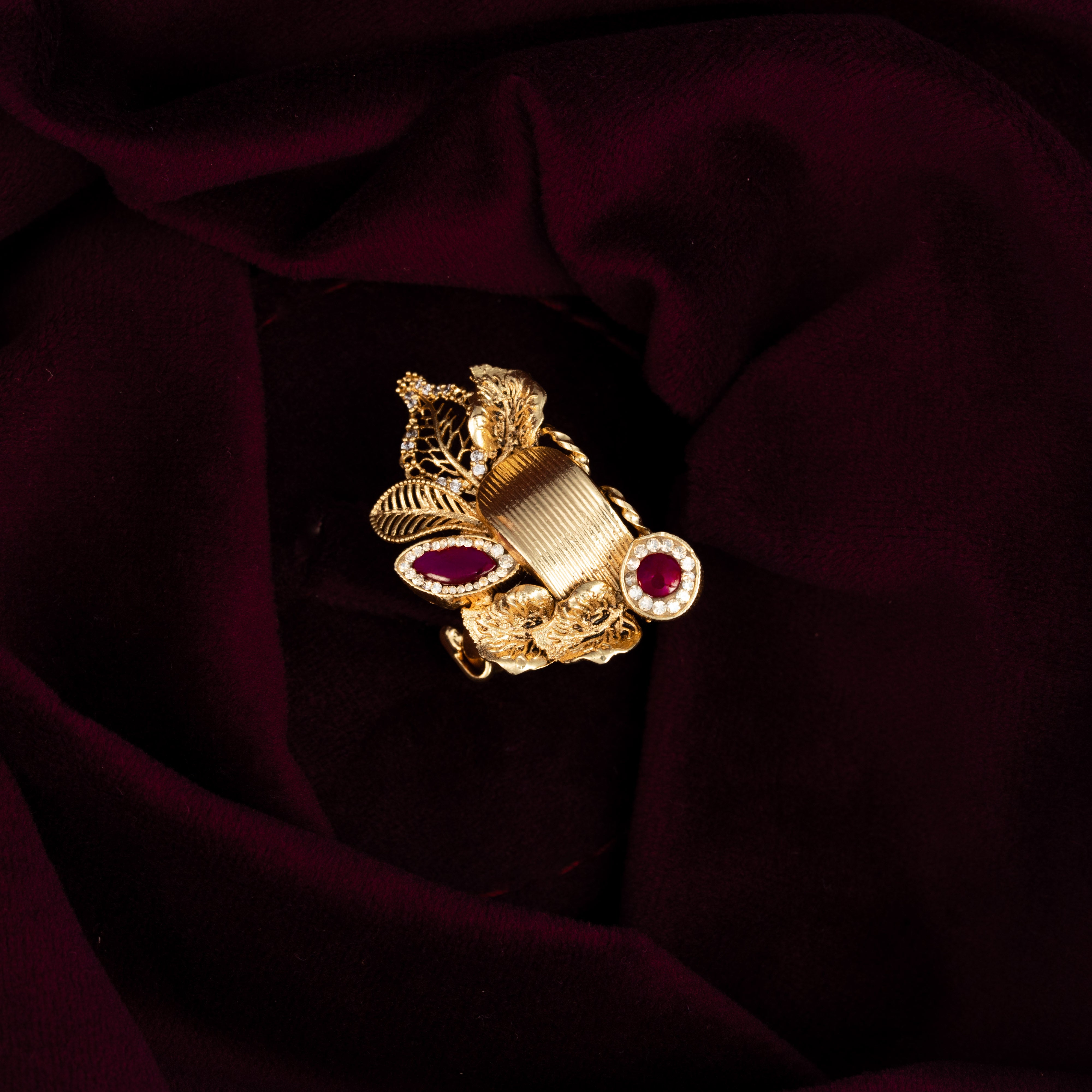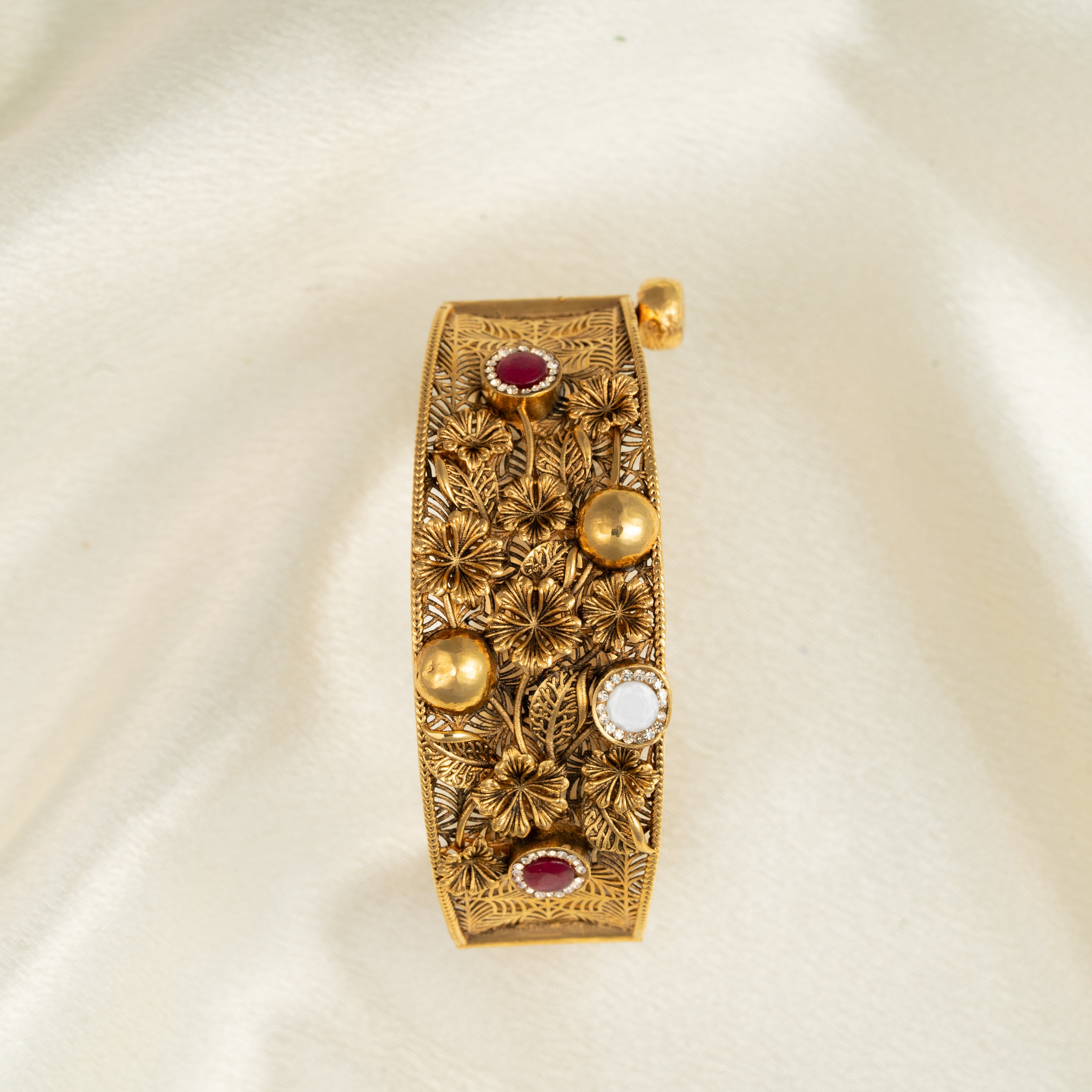 This stunning collection features intricate deep Nakas designs combined with exquisite Kundan work. Each piece is a unique creation, taking over 60-90 days to perfect, embodying the highest level of craftsmanship.