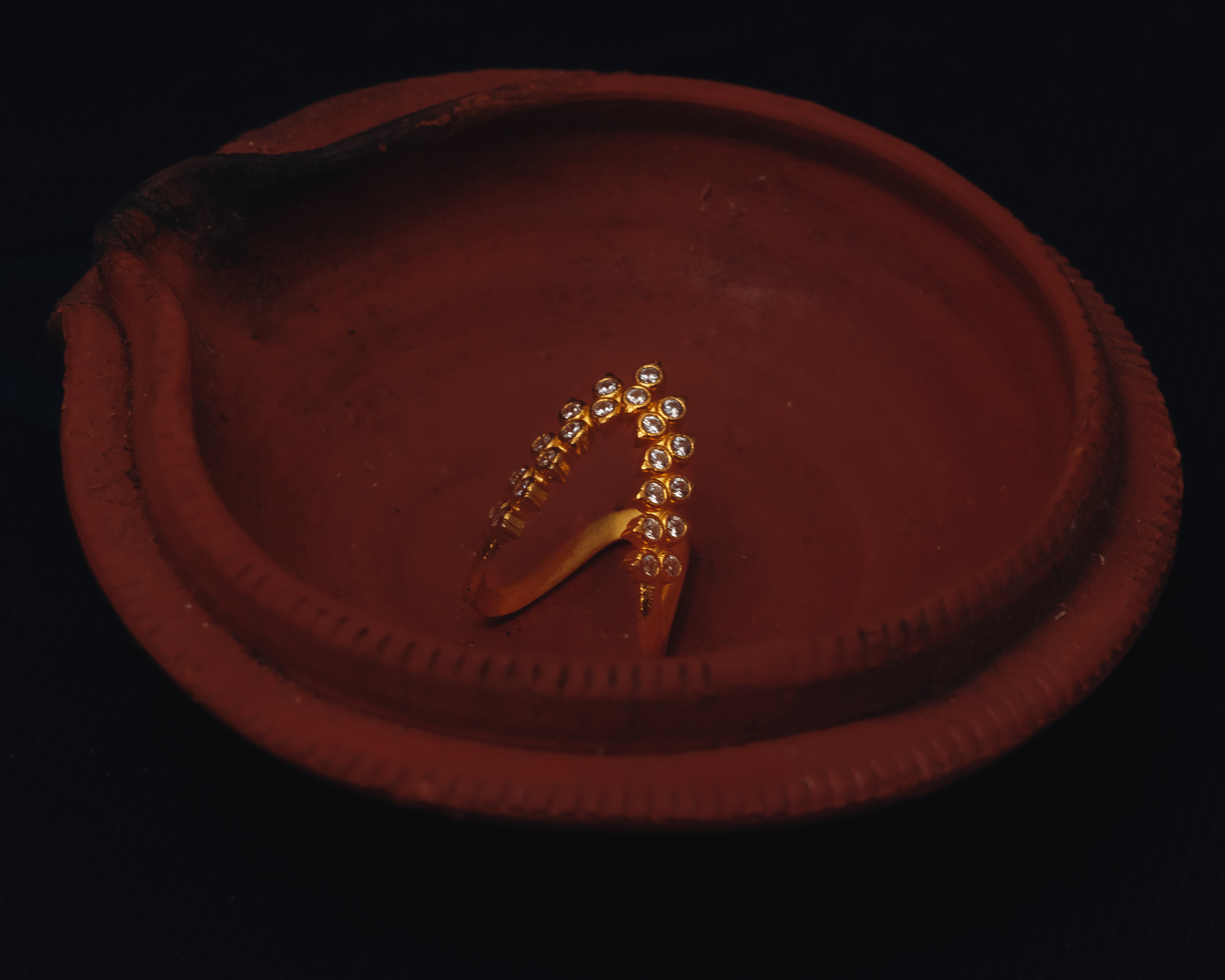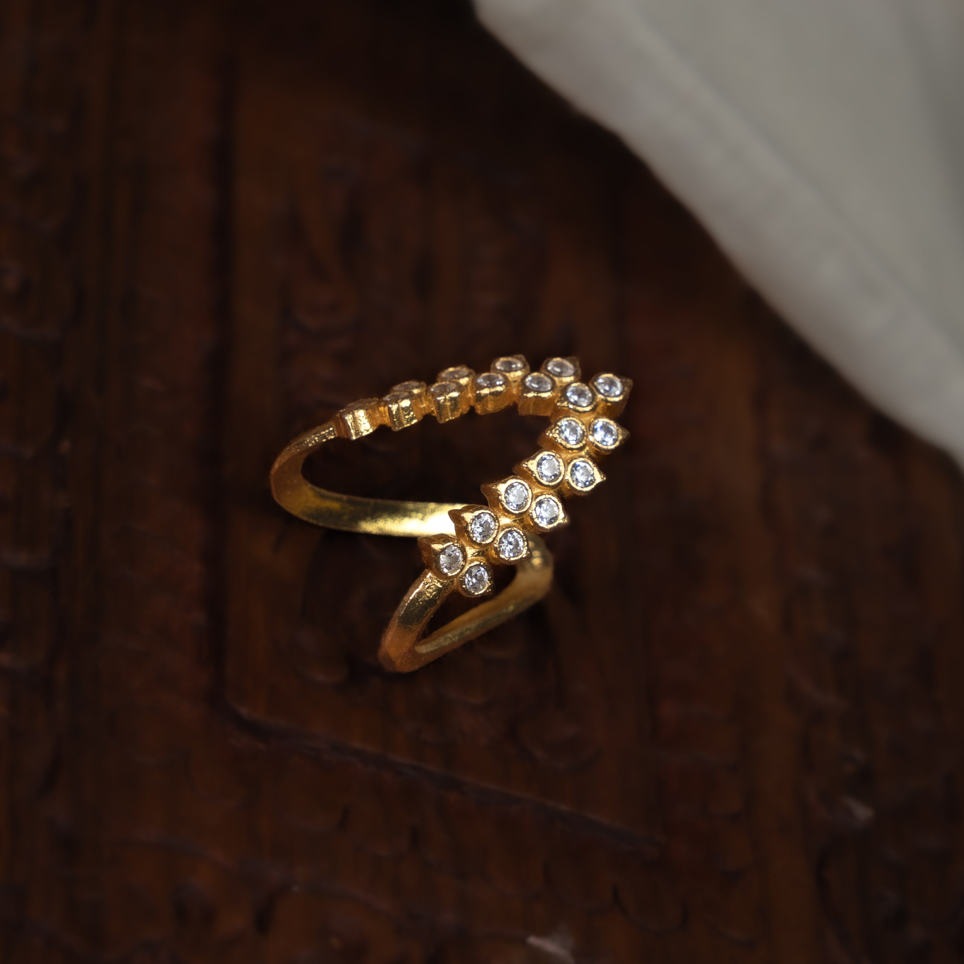 Diamonds V Shaped Cz Studed Vanki Ring 18kt Gold Polish