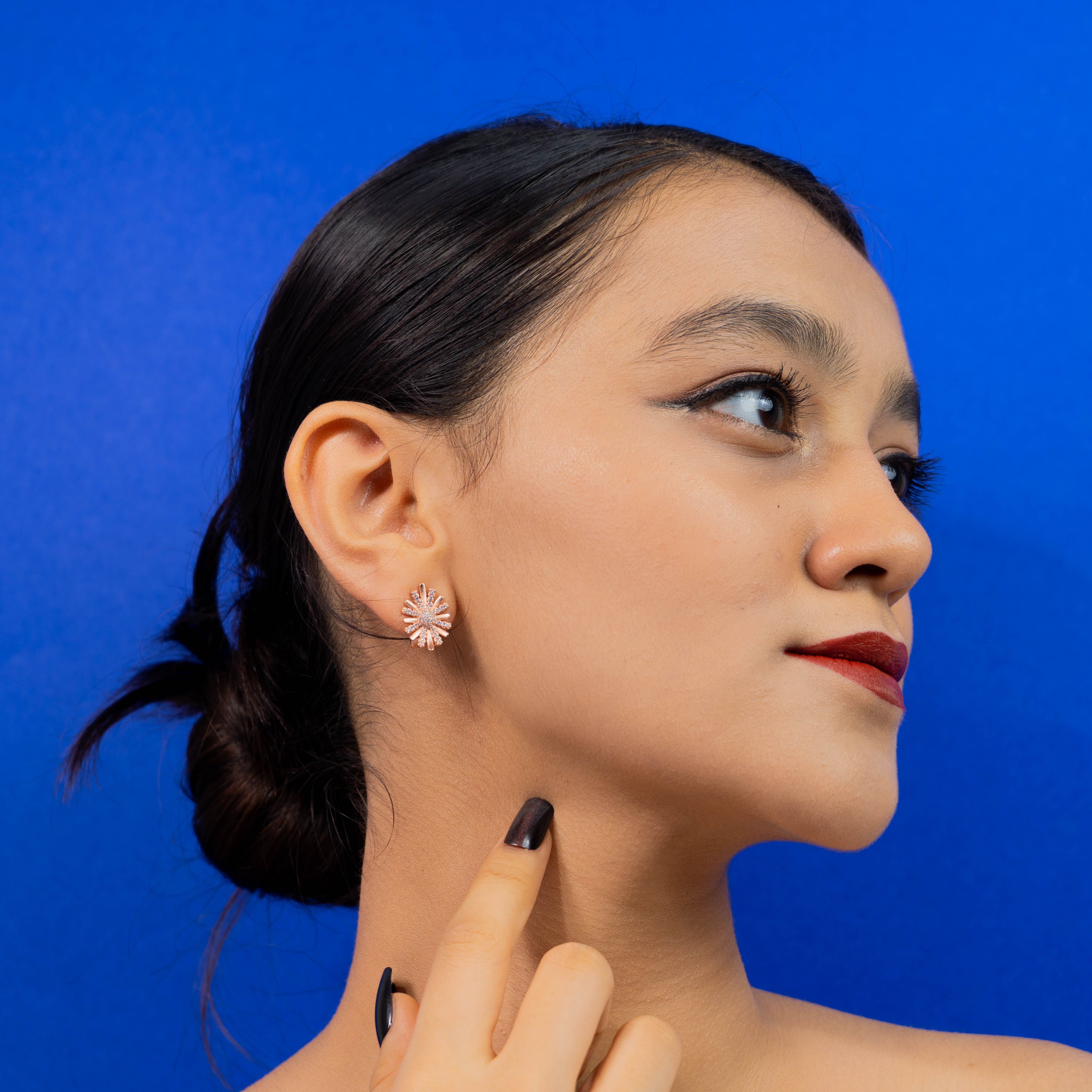 PRODUCT DETAILS : The Earrings are made of 925 Stamped sterling silver, Rose gold coated and is embellished with high quality zircon stones adding the shine. It is a perfect surprise for the one you love.