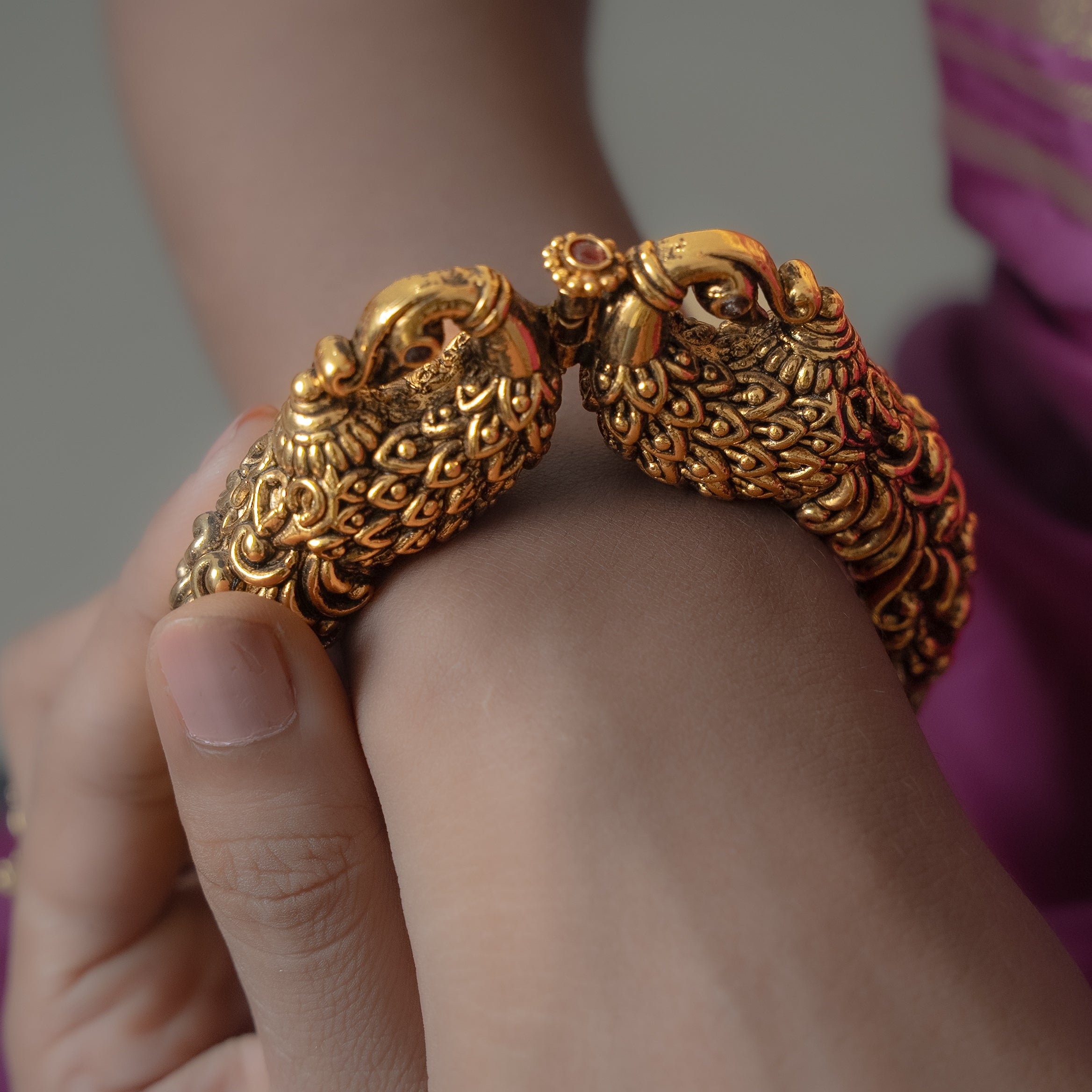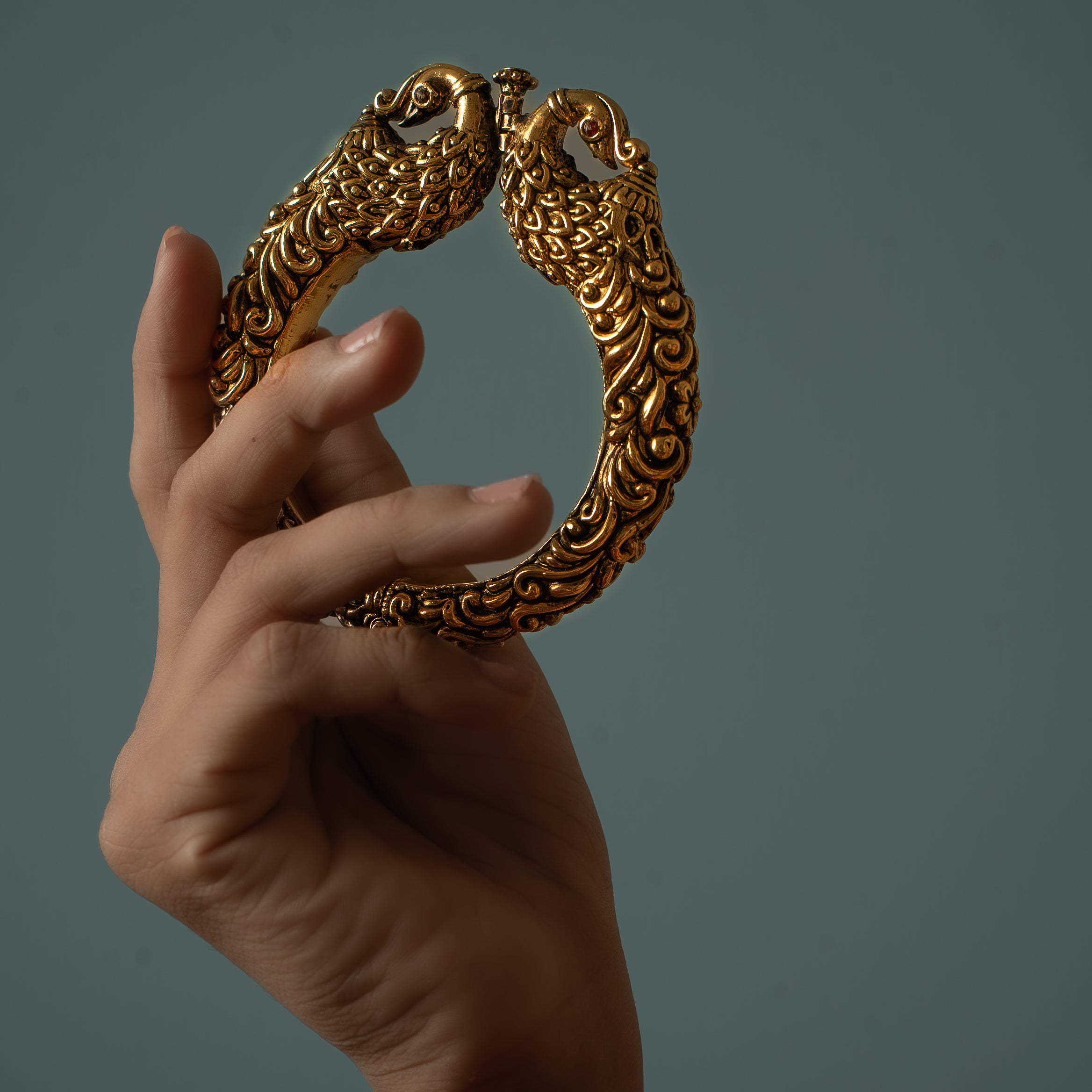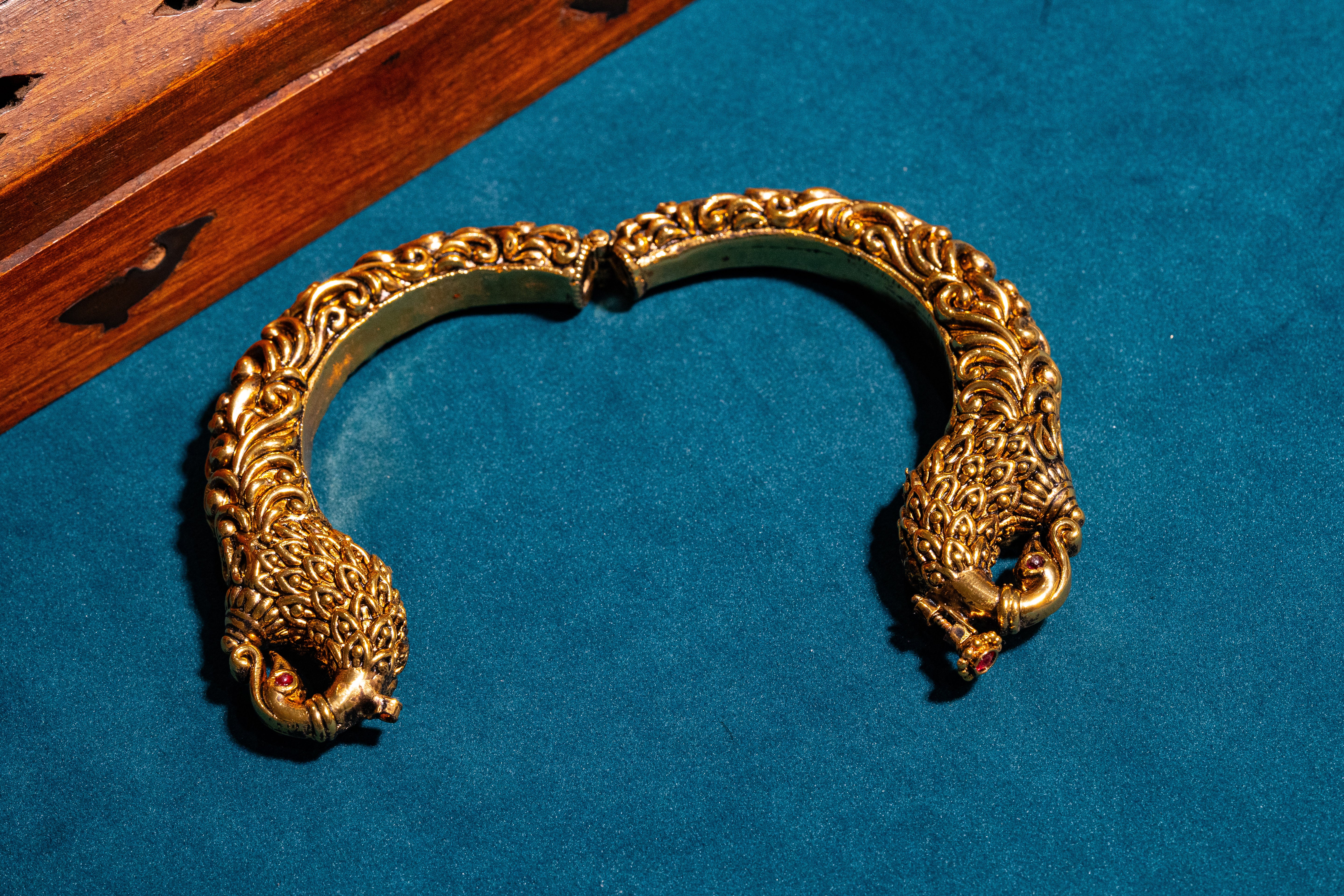 Deep Nakas Peacock Bracelet For Men in 24kt Gold Polish