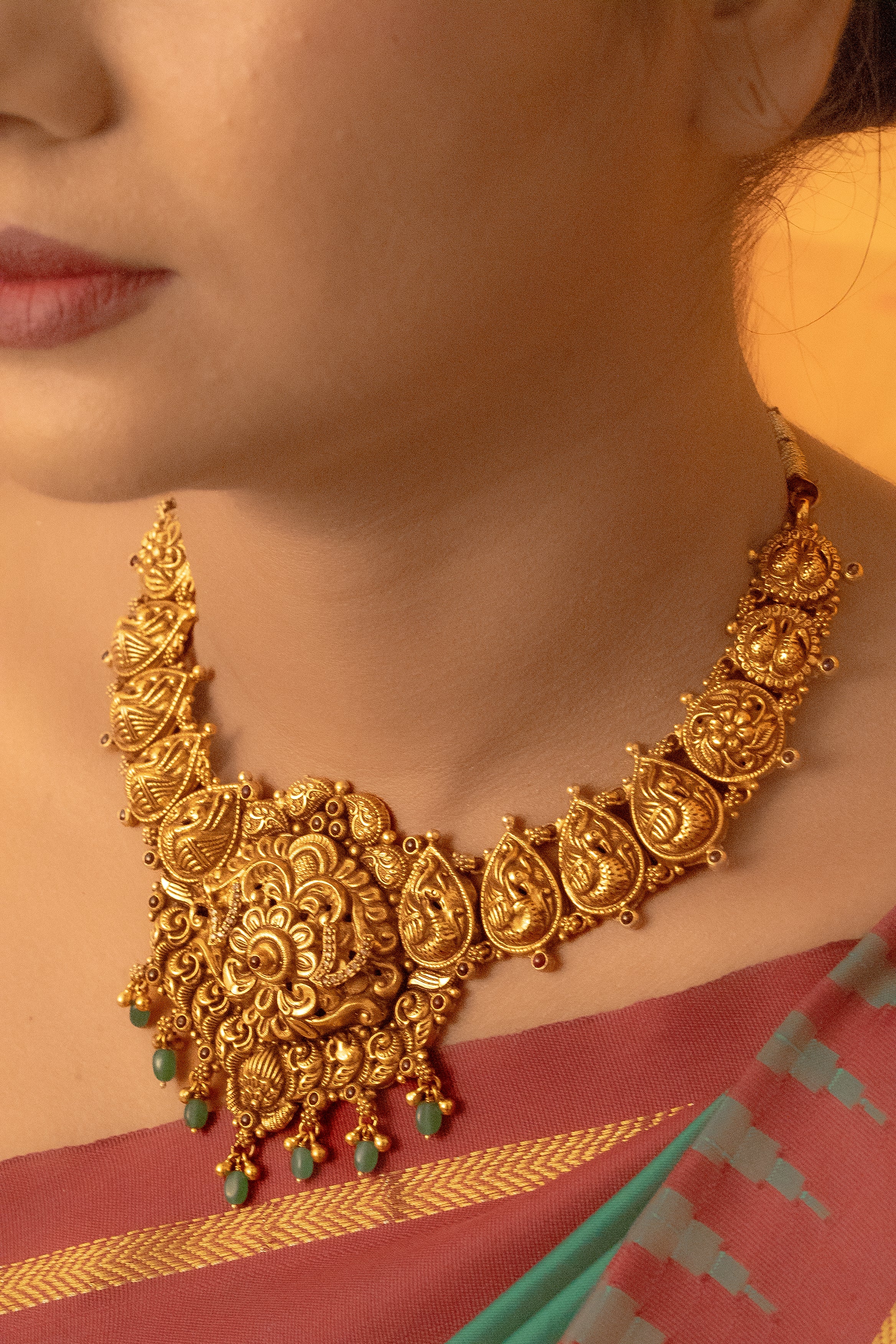 Introducing our Nakas/Nagas Short Necklace Collection—luxurious jewellery meticulously crafted from pure 92.5 silver and elegantly gold-plated. Each short necklace features intricate deep Nakas designs combined with exquisite Kundan work, taking over 60-90 days to perfect. Proudly offering the finest in affordable luxury, our Nakas/Nagas short necklaces blend traditional artistry with contemporary elegance. Discover the perfect fusion of opulence and affordability in every unique piece.
