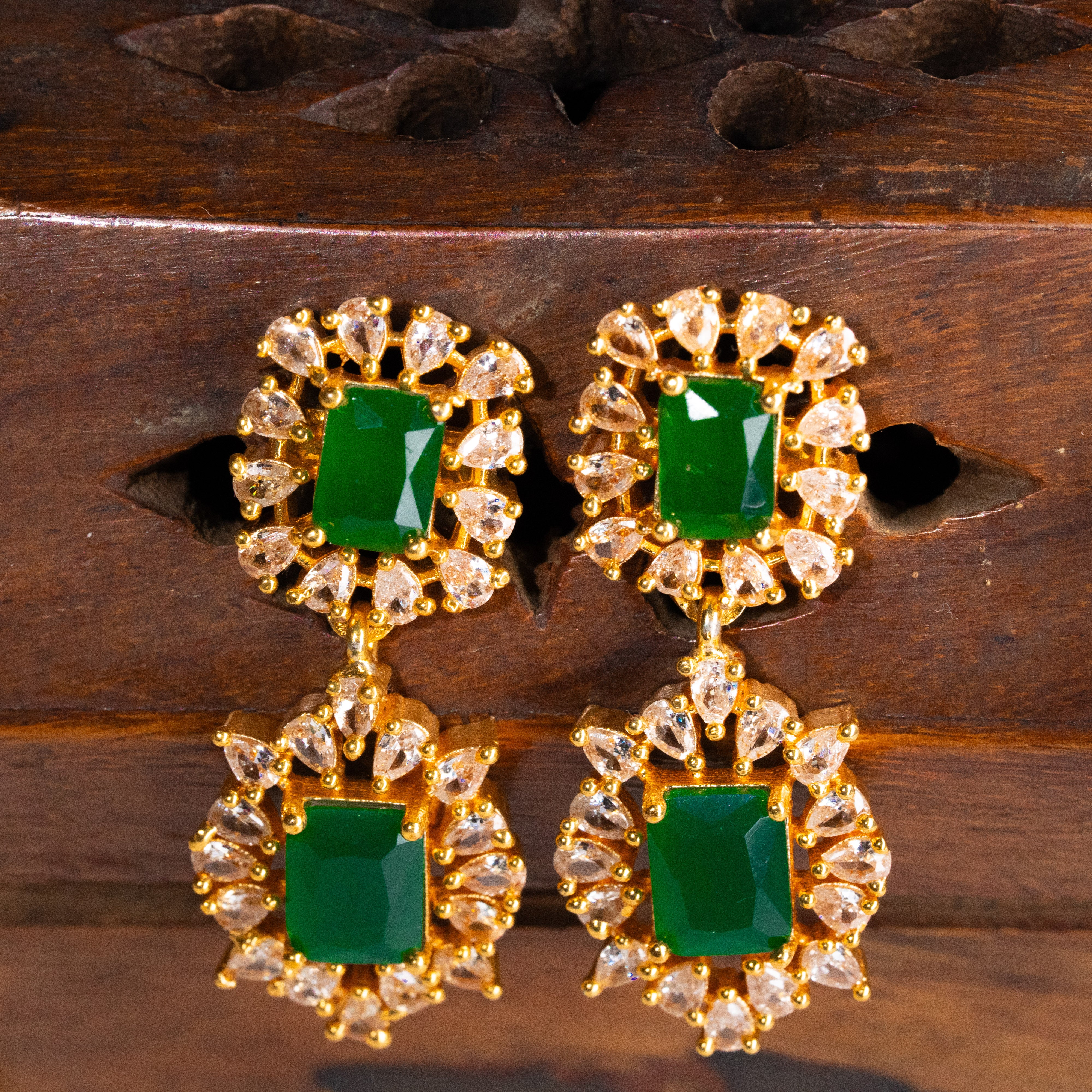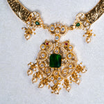Deep Nakas Cz Studded With Green Gem Stone Short Necklace With Earrings in 24kt Gold Polish