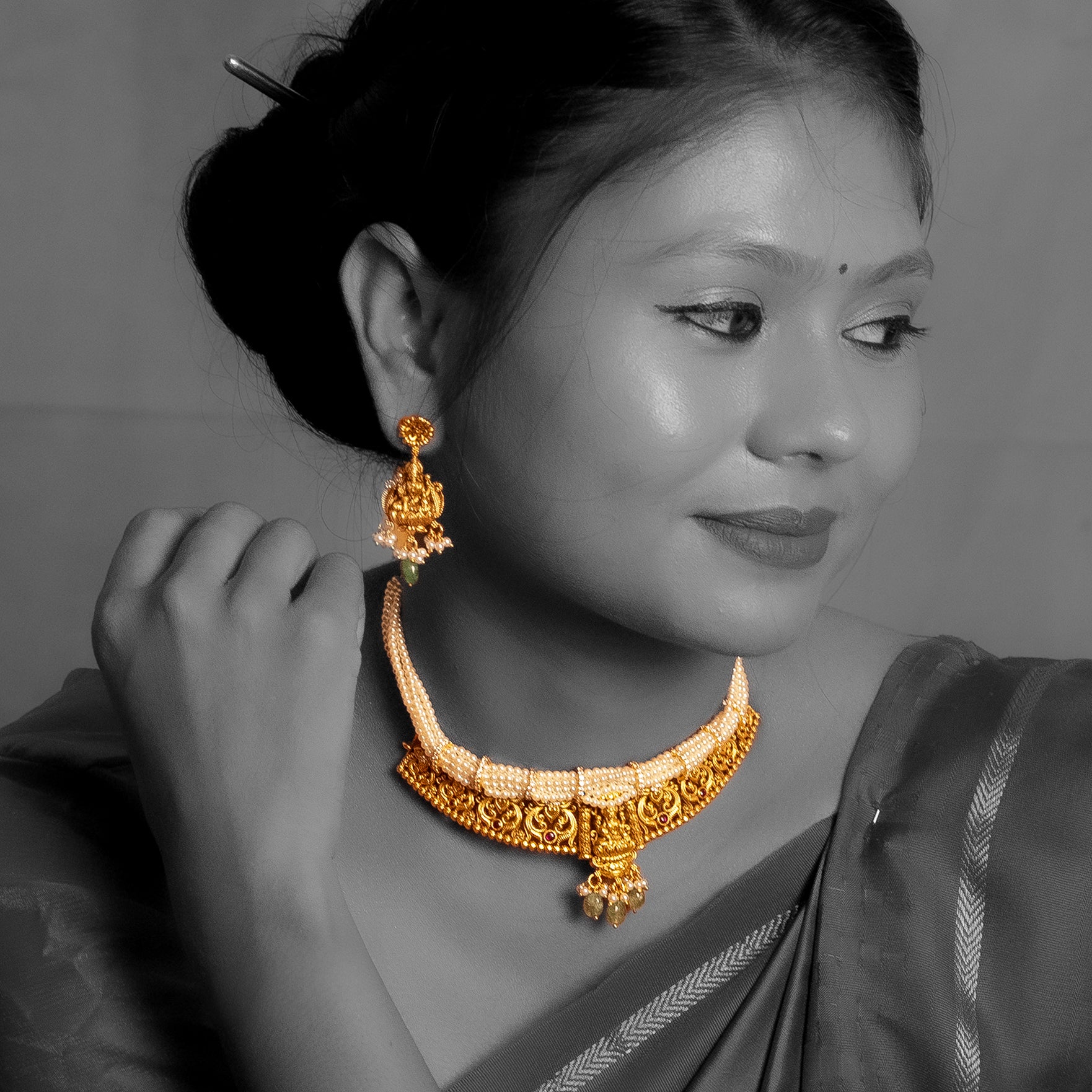 Introducing our Nakas/Nagas Short Necklace Collection—luxurious jewellery meticulously crafted from pure 92.5 silver and elegantly gold-plated. Each short necklace features intricate deep Nakas designs combined with exquisite Kundan work, taking over 60-90 days to perfect. Proudly offering the finest in affordable luxury, our Nakas/Nagas short necklaces blend traditional artistry with contemporary elegance. Discover the perfect fusion of opulence and affordability in every unique piece.