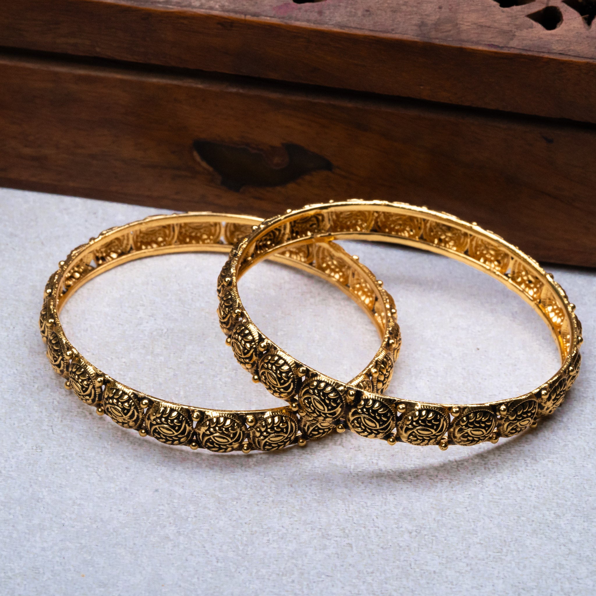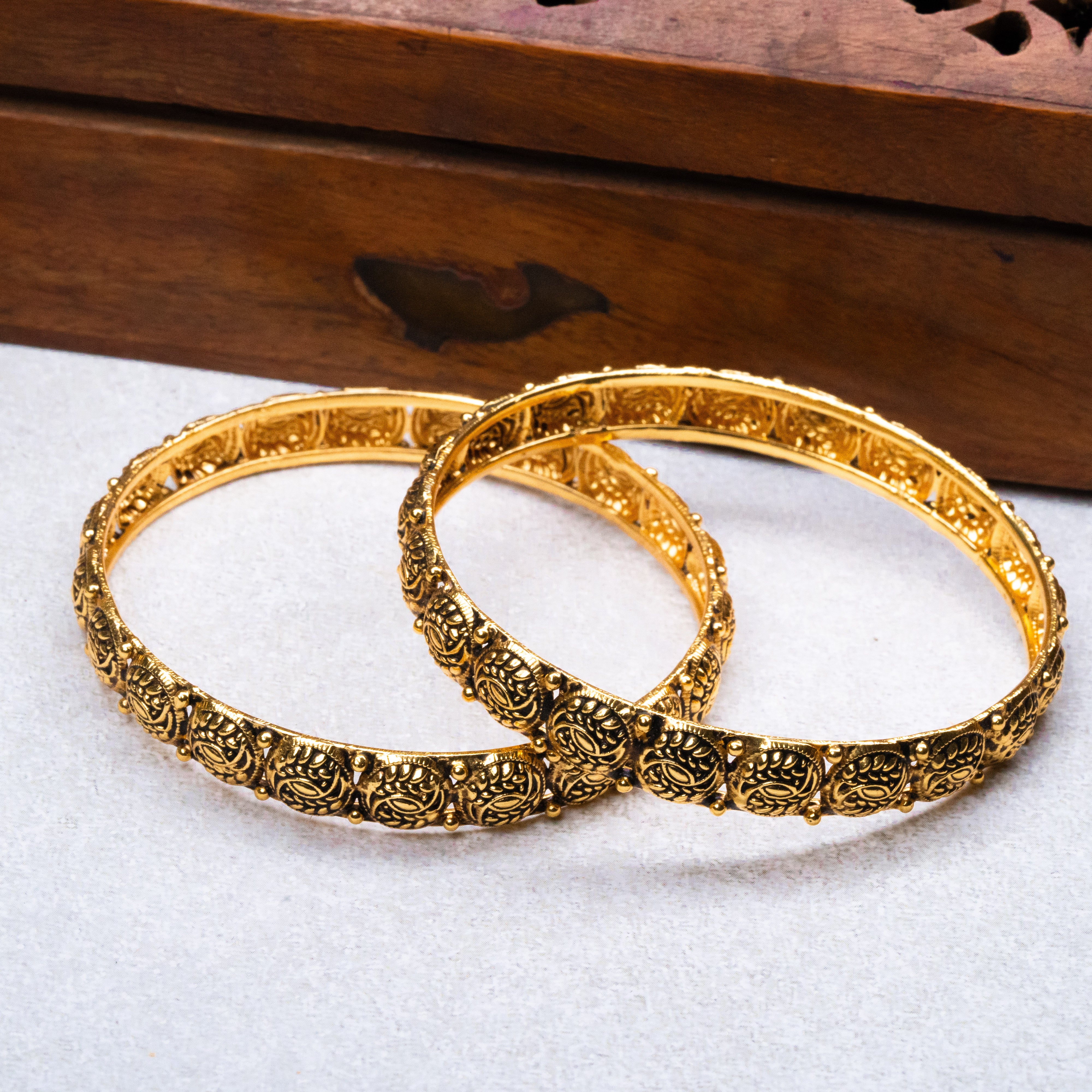 Deep Nakas with Leafs 24kt Gold Plated Bangales