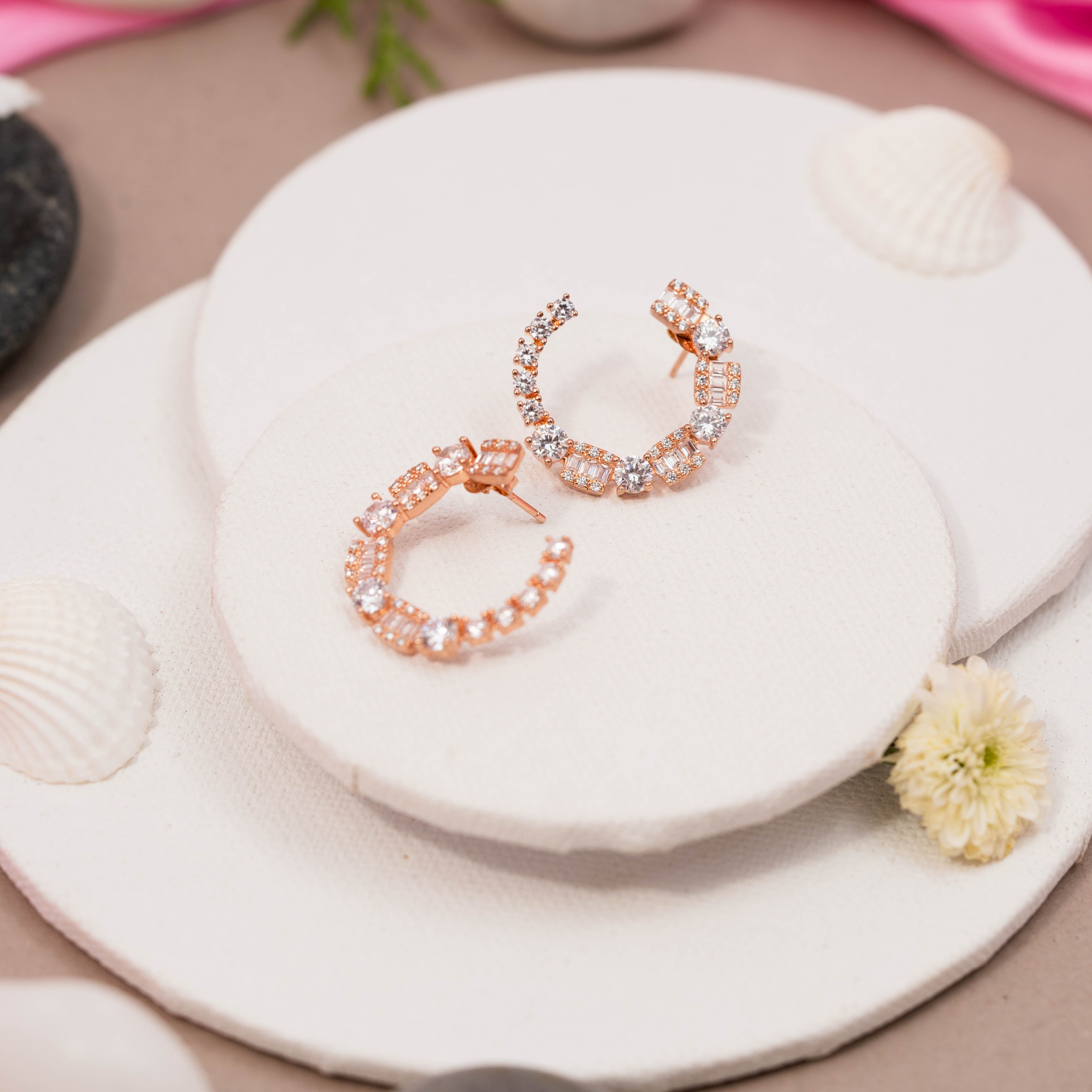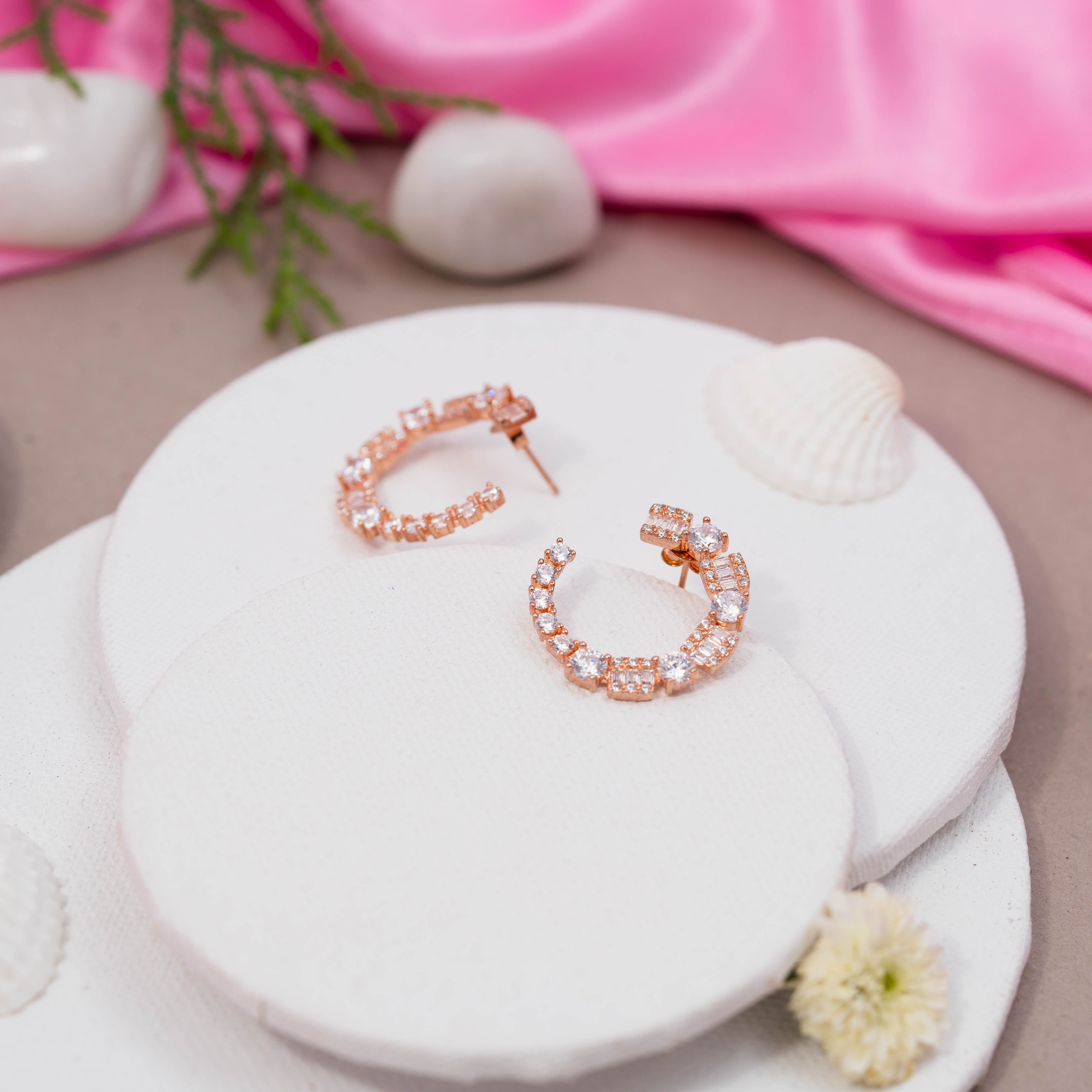 PRODUCT DETAILS : The Earrings are is made of 925 Stamped sterling silver, Rose gold coated and is embellished with high quality zircon stones adding the shine. It is a perfect surprise for the one you love.