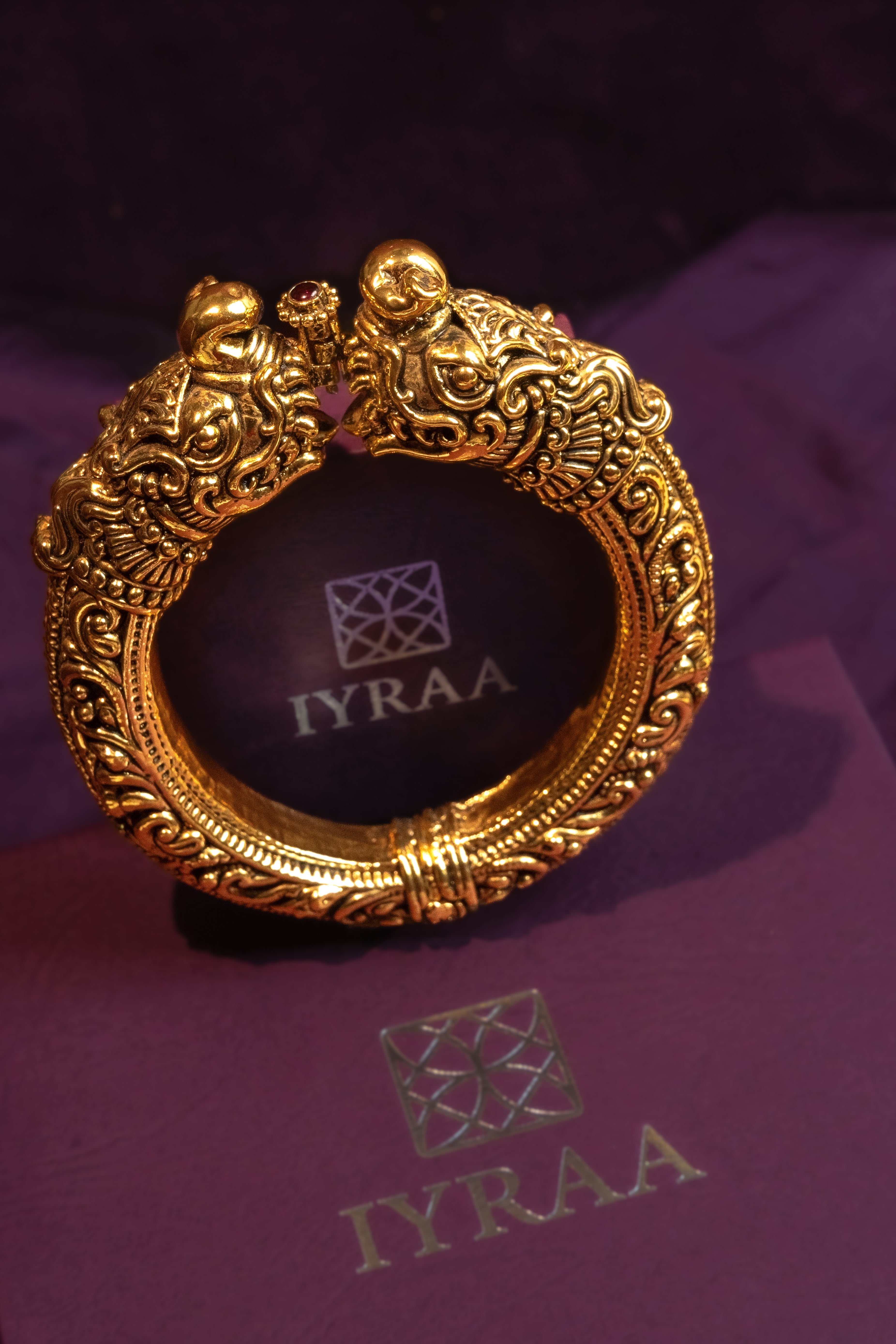 Deep Nakas Ancient Animal Bracelet For Men in 24kt Gold Polish