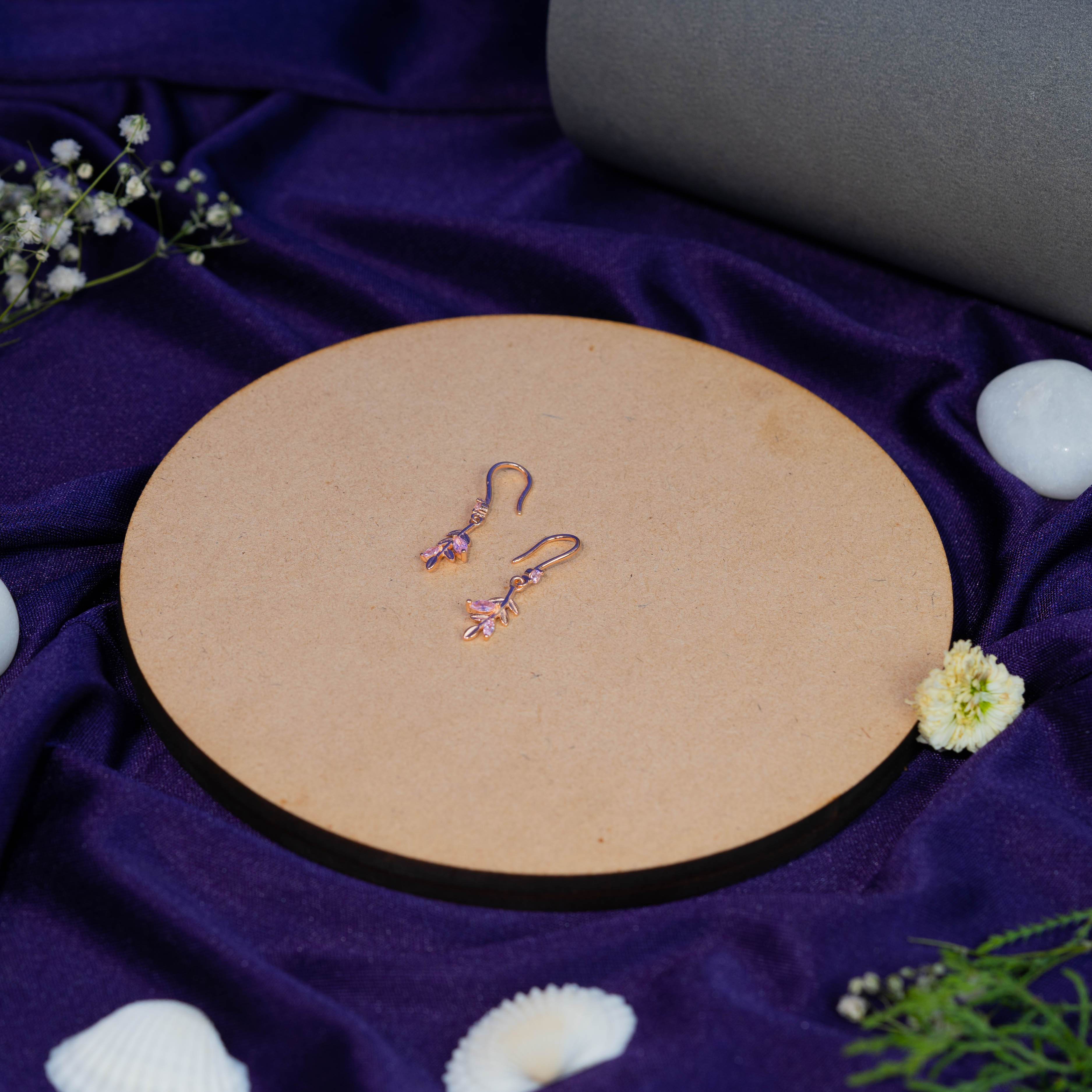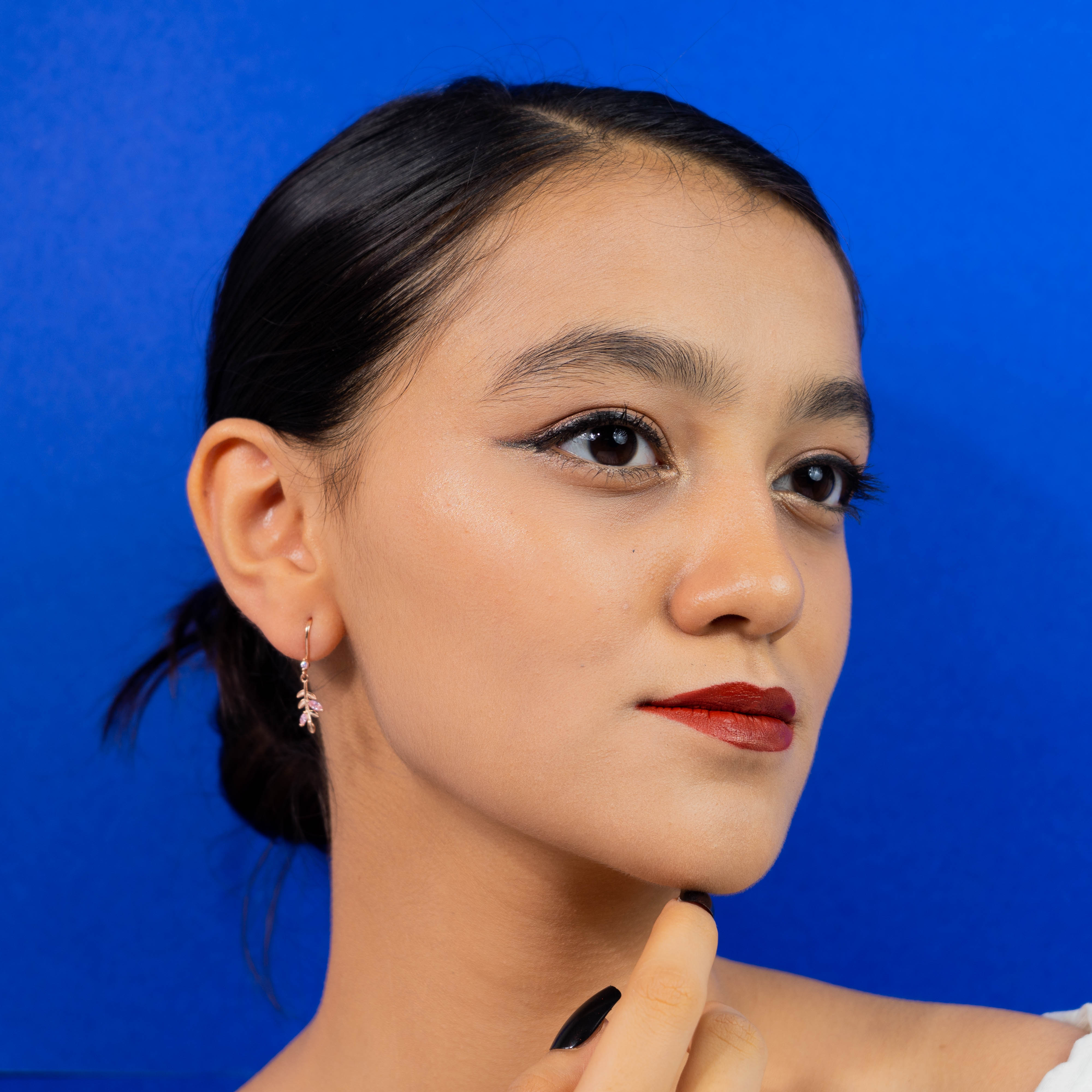 Pink Leaf Carved Tourmaline Earrings In Rose Gold
