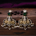 Lord Venkateshwara Green Stone Victorian Pendant With Earrings