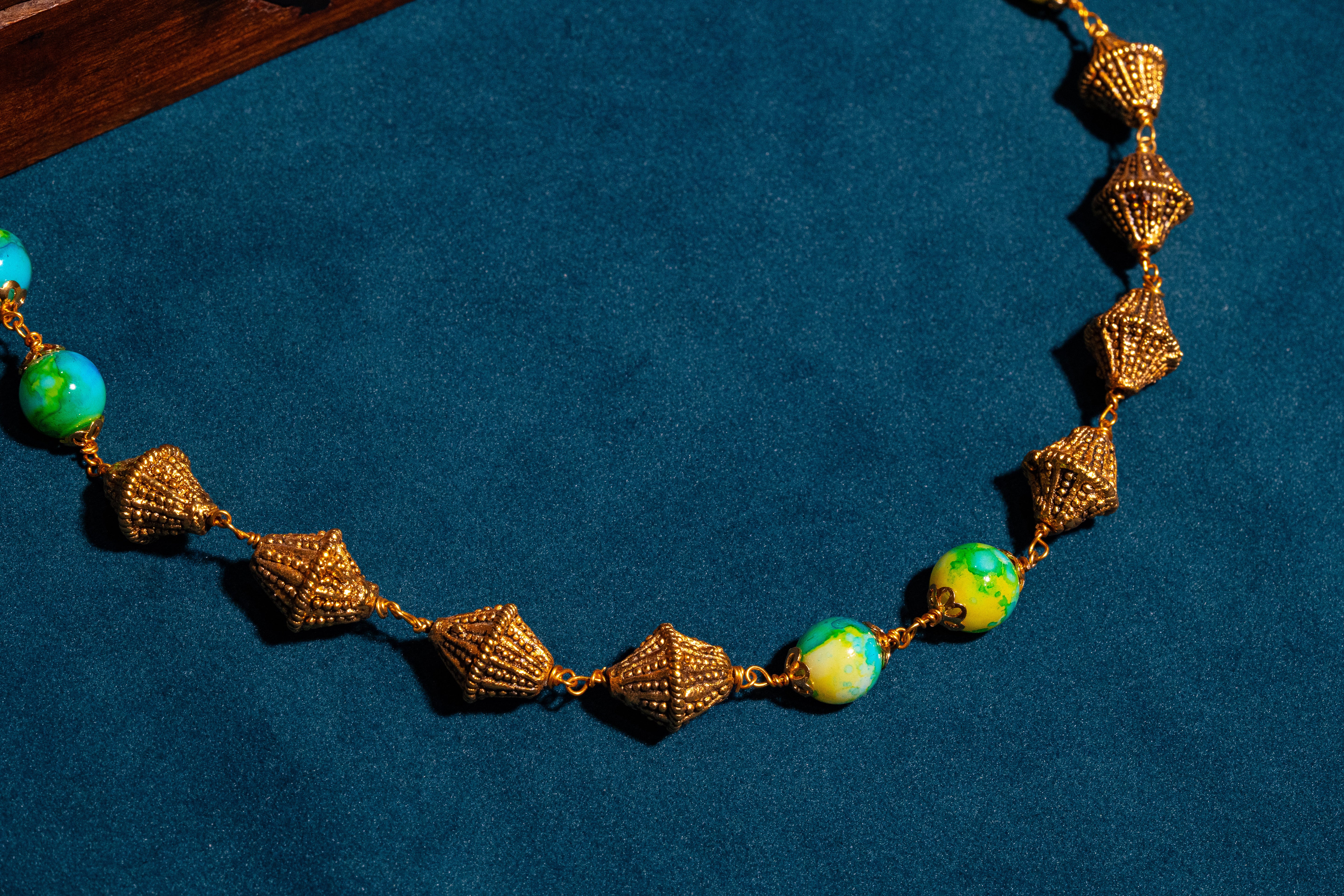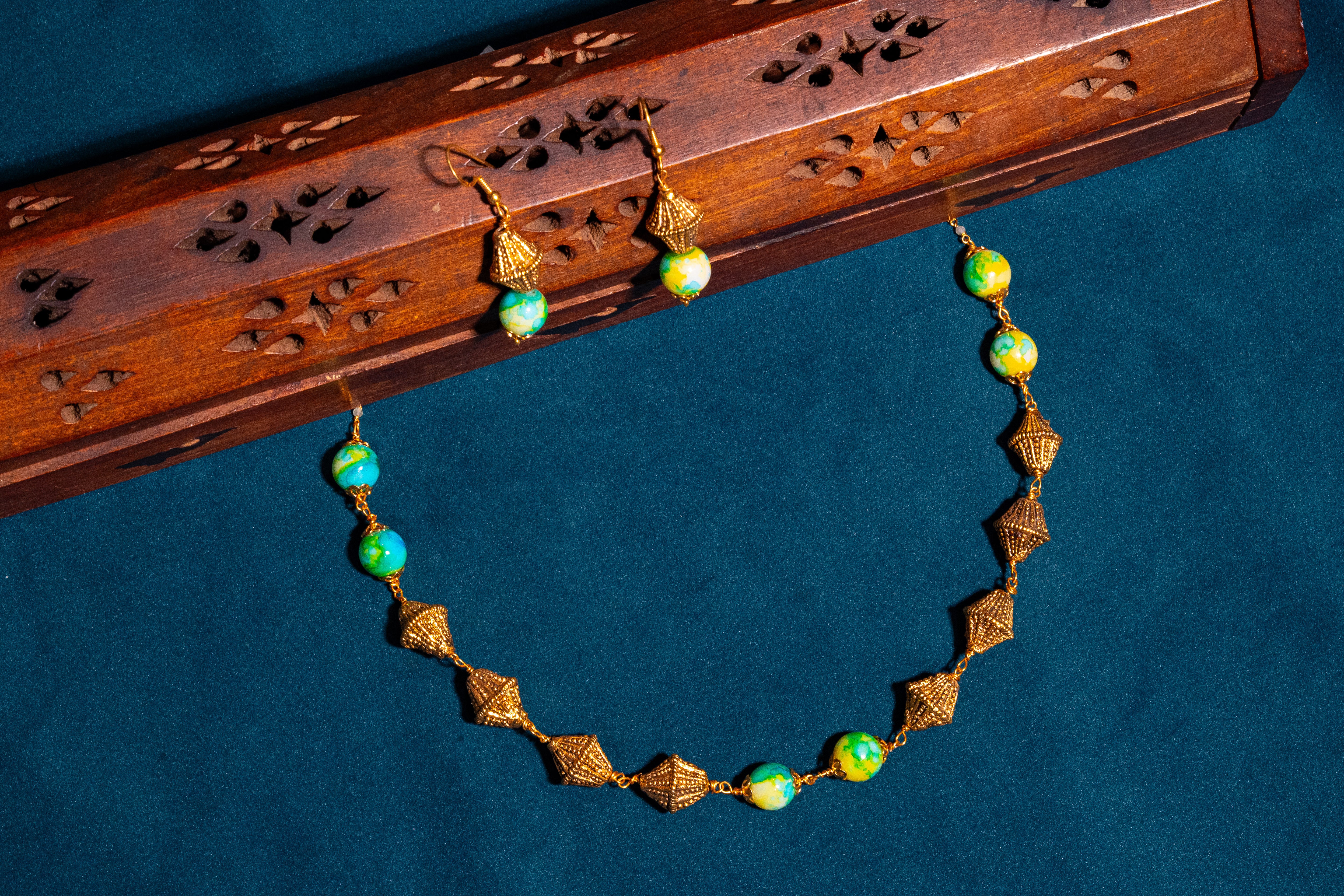 Parrot Green Stones Necklace With Earrings in 24kt Gold polish