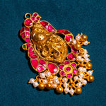 Peacock With Pink Kundan With Pearls Pendant in 24kt Gold polish