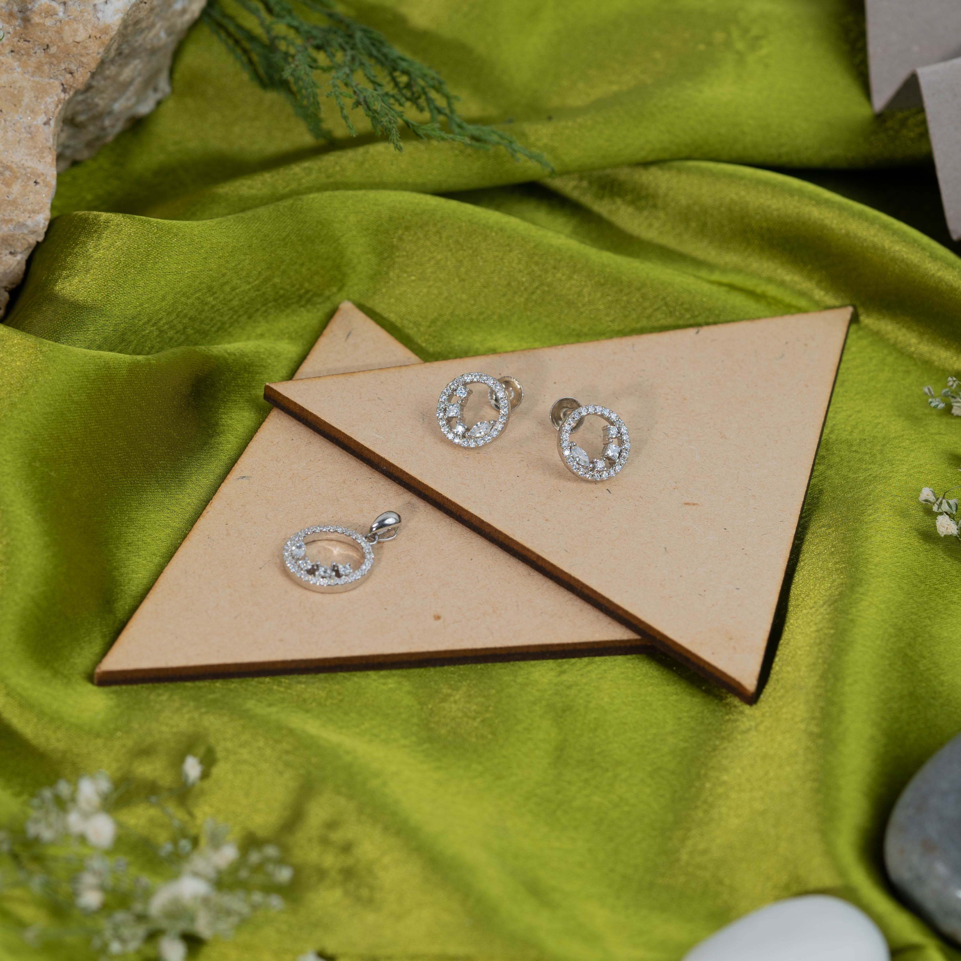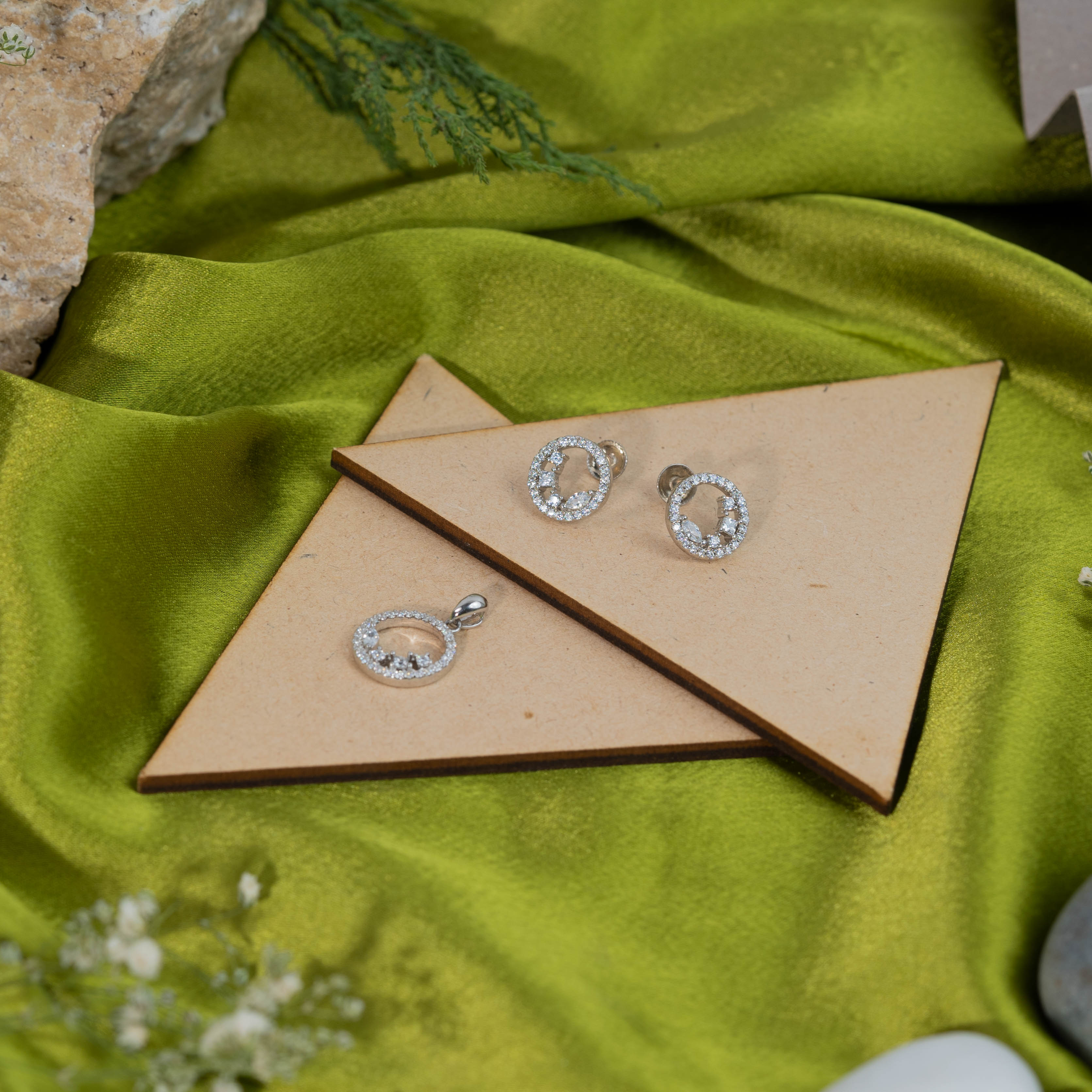 Pendant Earrings Set Sliver (2B)