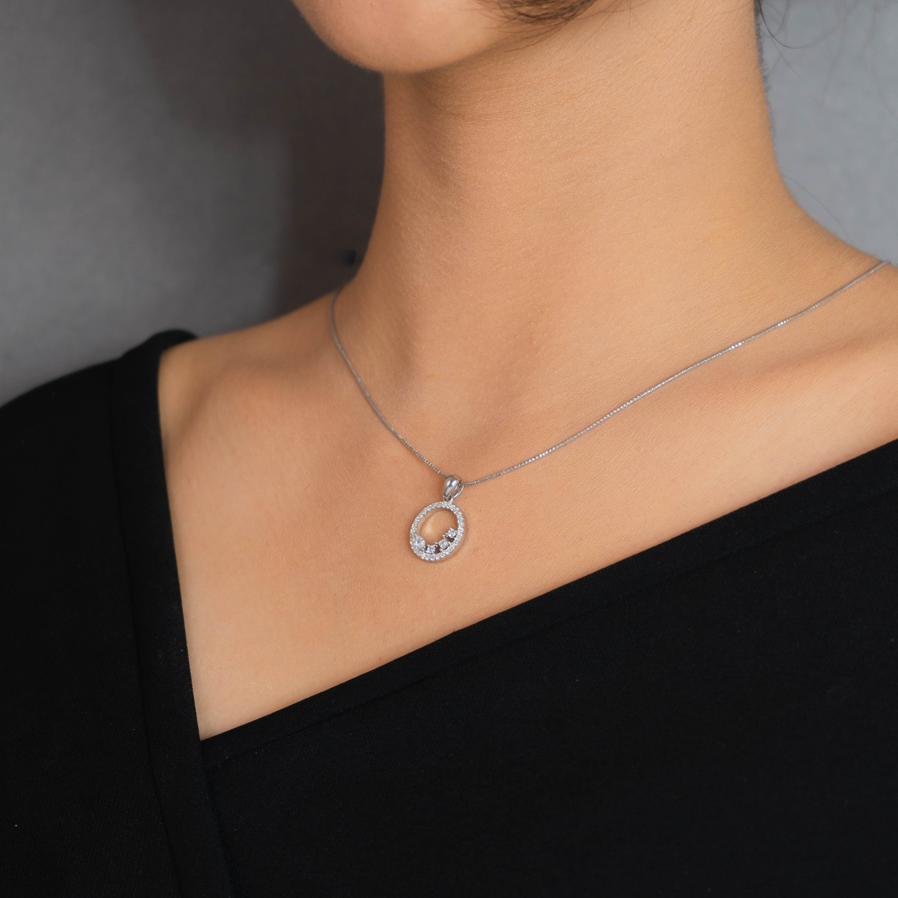 PRODUCT DETAILS : The Pendant set is made of 925 Stamped sterling silver, White gold coated and is embellished with high quality zircon stones adding the shine. It is a perfect surprise for the one you love.