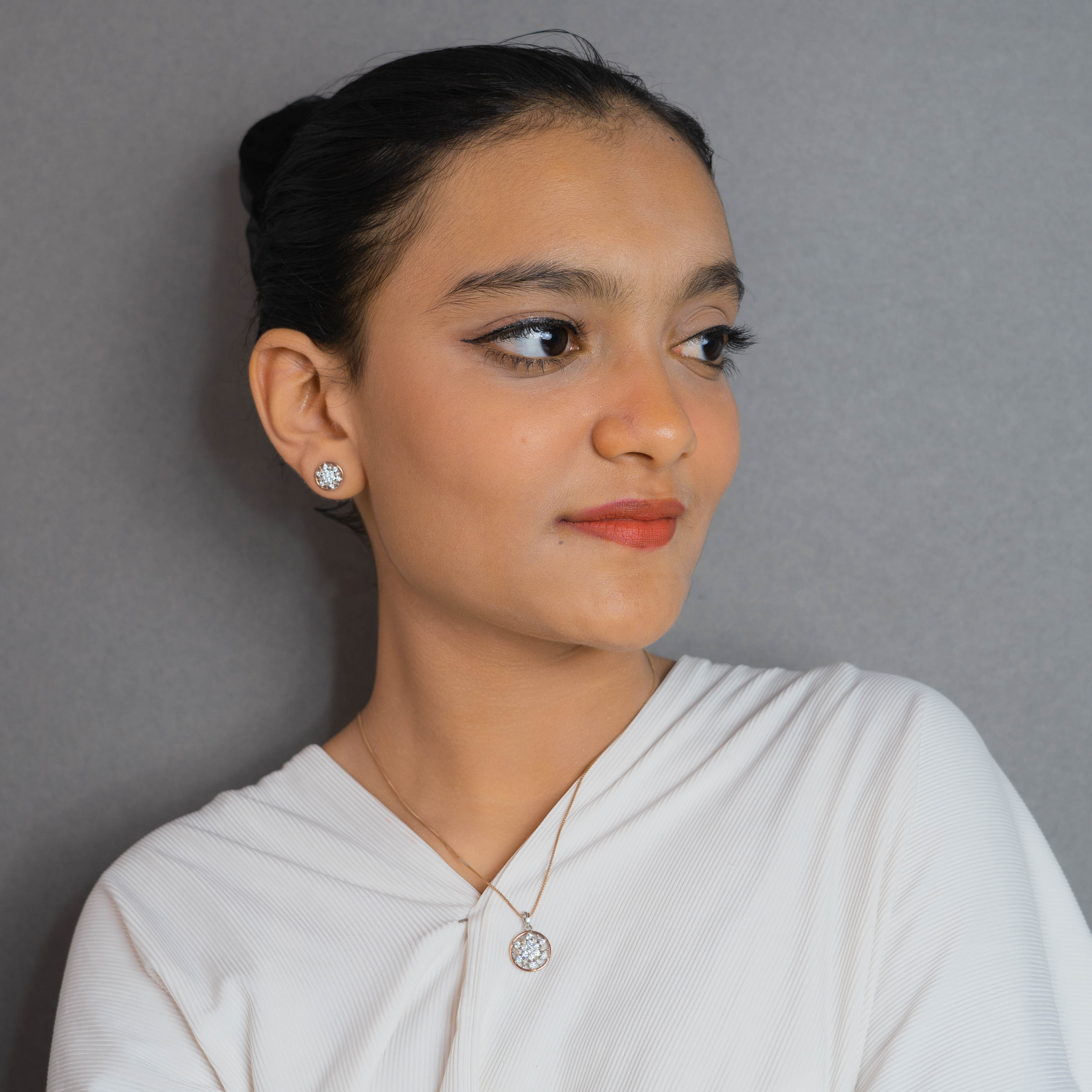 Pendant Earrings Set Sliver and Rose gold (2A)
