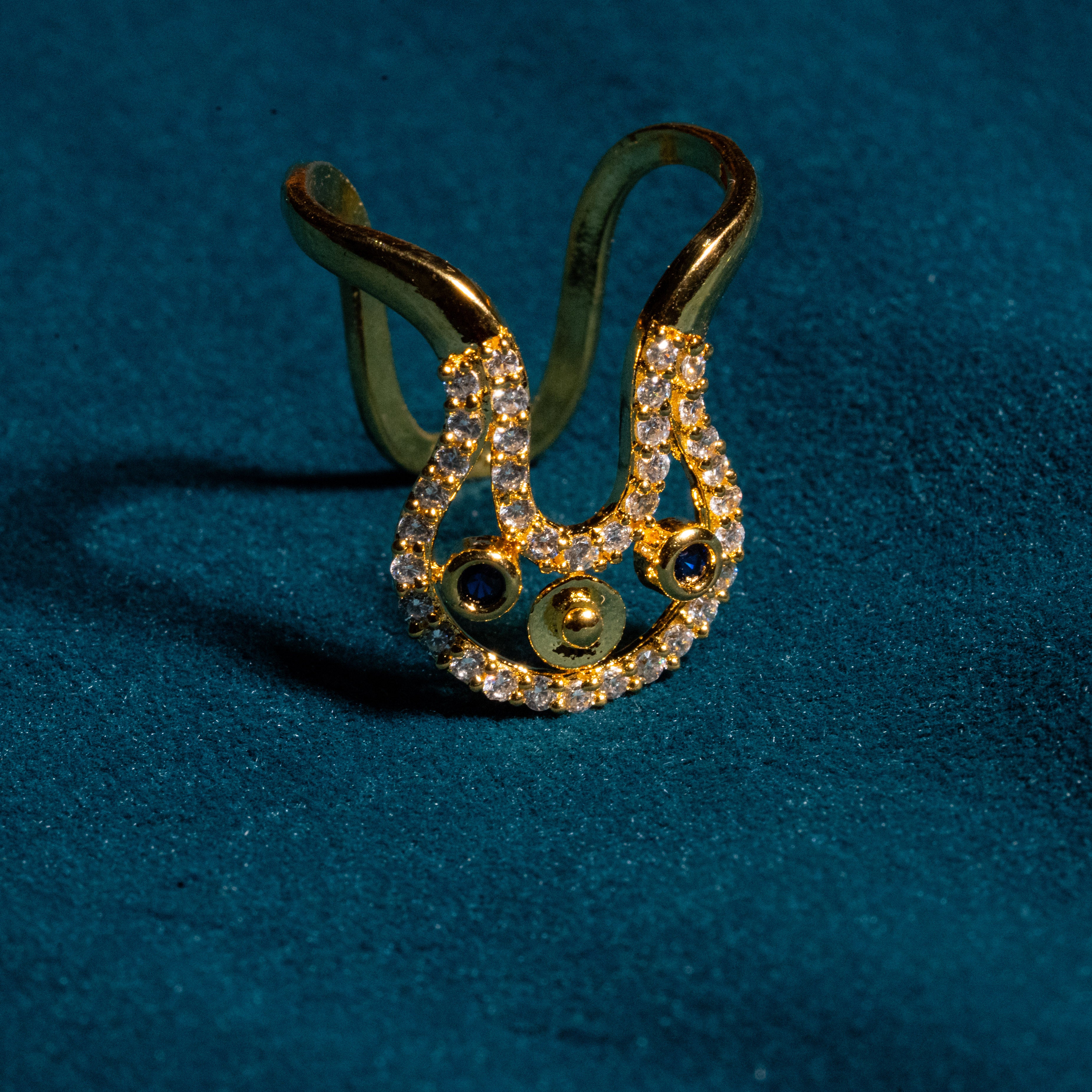 Blue And White Cz Studed Vanki Ring 18kt Gold Polish