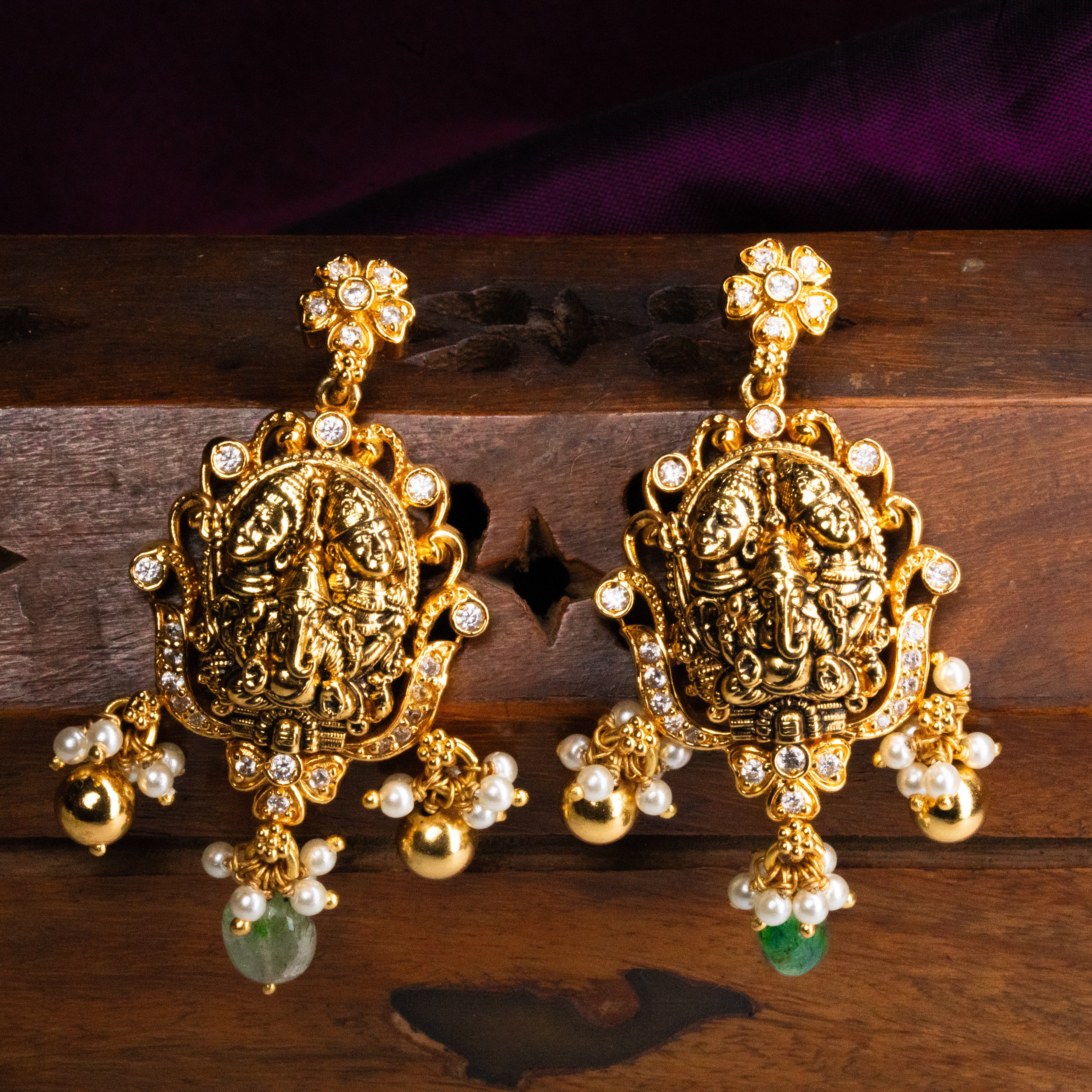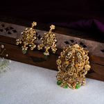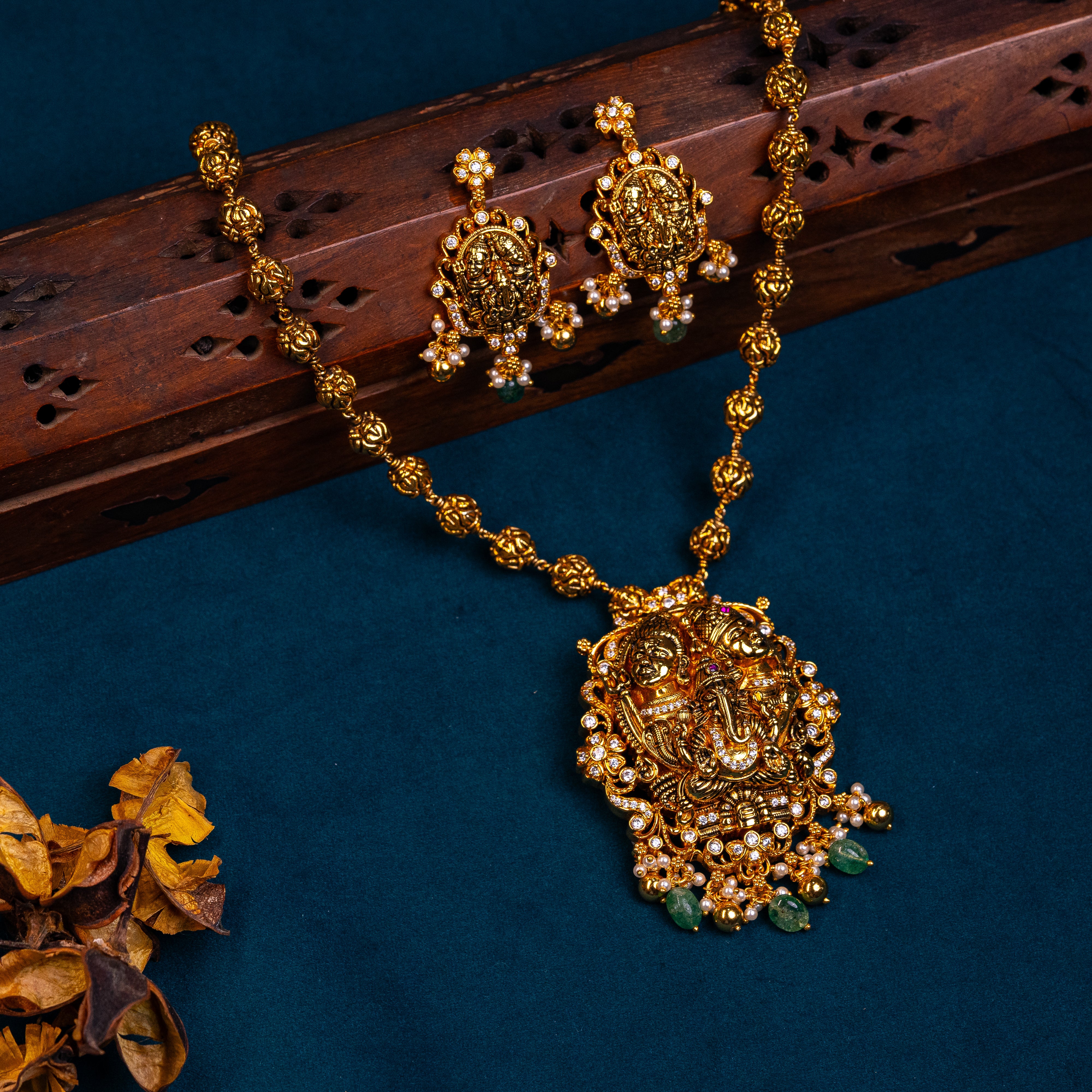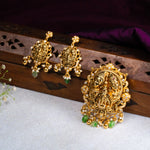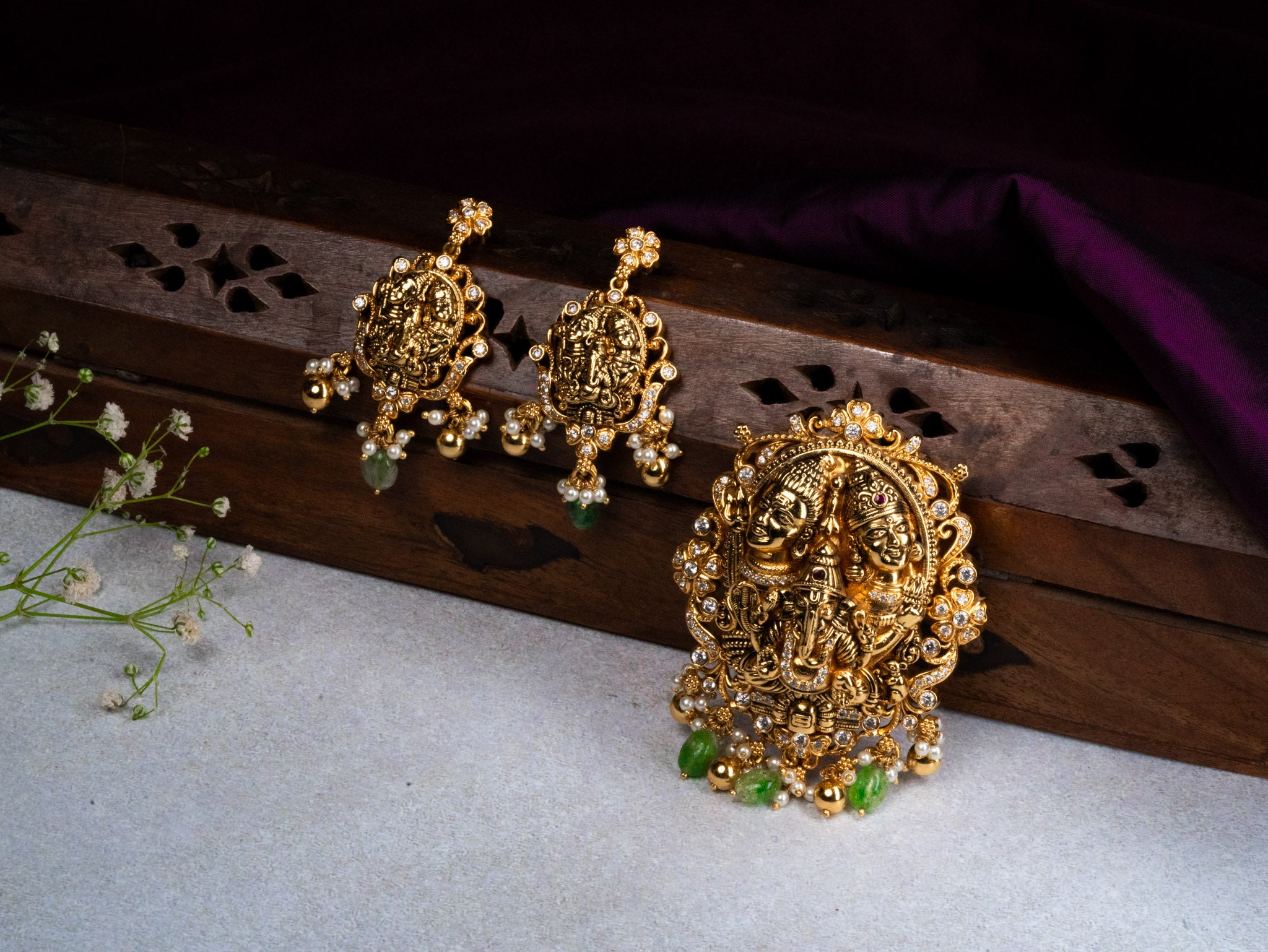 Deep Nakas Shiva Parvathi And Ganesha With Cz in Pendant With Earrings 24kt Gold Polish
