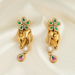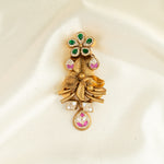 Deep Nakas Verdant Kundan Leaf Pendant Drop Earrings Green and Pink Ruby 24kt Gold polished