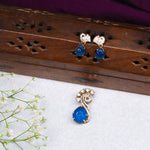 Blue Sapphire Pendant With Earrings in Mossinaite 18kt Gold Polish